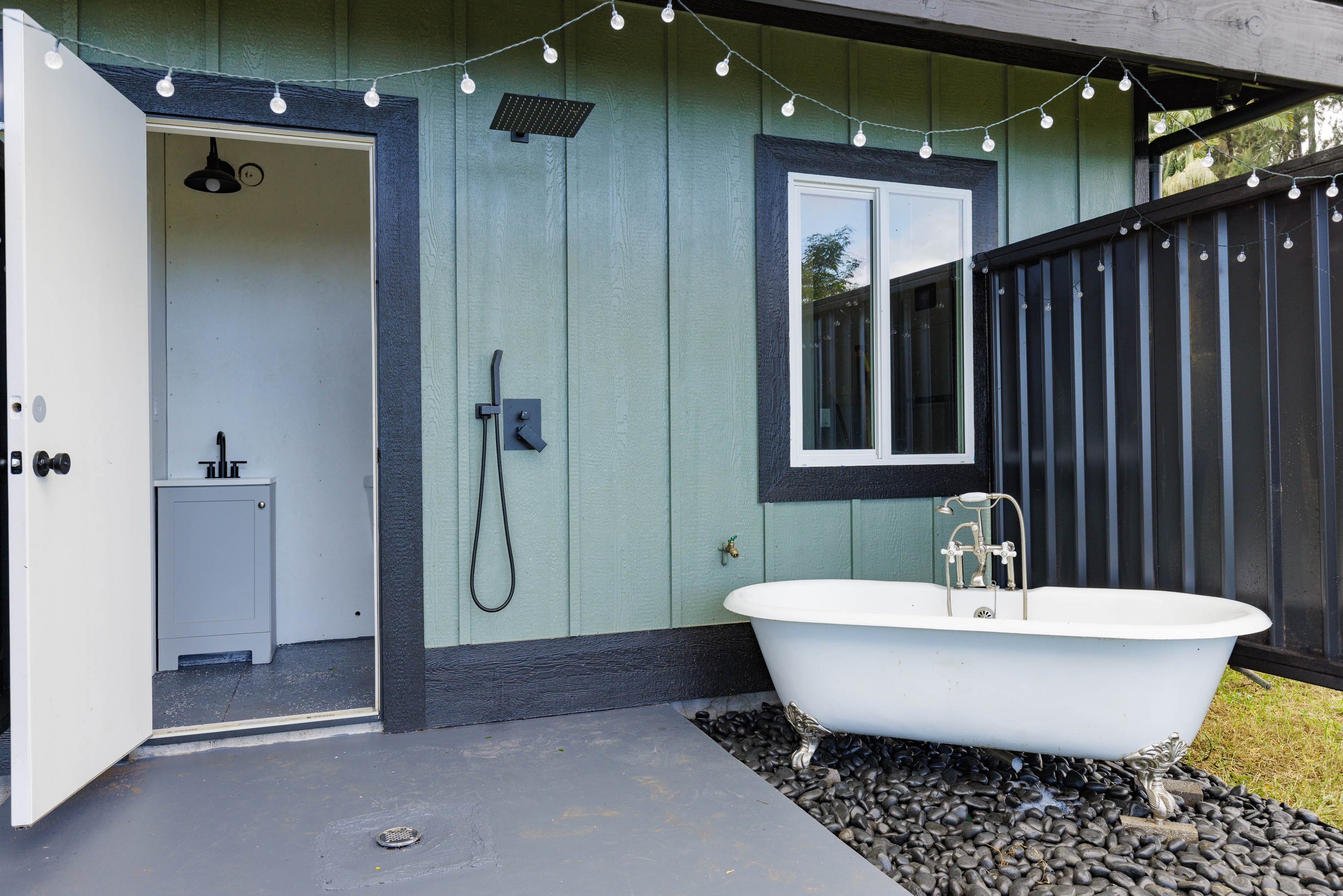 Detached from the home is a large workshop equipped w/ its own bathroom, outdoor shower & clawfoot tub, & houses solar equipment for the home + shop. Additionally, an oversized 20,000-gallon watertank & pump/filter-shed takes care of the water needs.