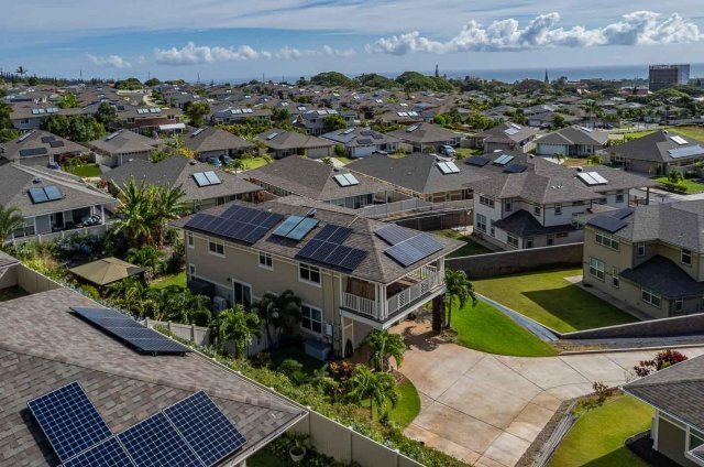 Now is your chance to acquire the largest floorplan on the most substantial lot within the highly-desired Ilima at Kehalani community. This impressive home is loaded with upgrades, including a 30-panel photovoltaic system with two Tesla Powerwalls. Enjoy stunning Haleakala and ocean views from the large covered lanai. The home is cooled with five Fujitsu split-system air-conditioners, one in each bedroom, the upstairs great room and downstairs family room. In addition to AC, there are upgraded ceiling fans with lights throughout the home, including Minka Aire fans in the living room and bedrooms. This home, purchased as new construction in 2021 from the developer, has been highly enhanced by its owners, exuding pride of ownership. Upgrades included laminate flooring in the kitchen, great room & dining area when purchased, and the owners further improved the master bedroom and stairs with laminate flooring. The master closet features a custom shelving system. Touches such as new lighting fixtures and door knobs throughout the home have been added. The downstairs drop zone was an upgrade, as well as the porcelain bath wall surround, full rain gutters and the upgraded GE kitchen appliance package and refrigerator. Another $56k was spent on the exterior between the rock wall, vinyl fencing, irrigation, black fence, gazebo & patio, concrete border & driveway, and landscaping. Wonderful flag lot location near Puu Kukui Elementary School, parks and a short stroll or drive to the government buildings, the public library and restaurants of Wailuku town.