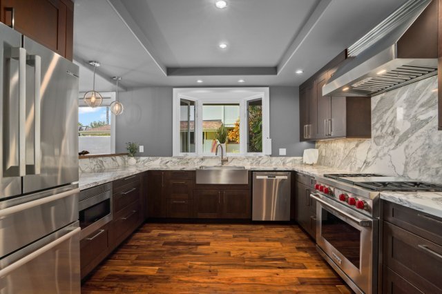 A Tranquil, Fully Renovated Retreat. Welcome to this beautifully transformed home, where a renovation of several hundred thousand dollars has created a truly like-new living experience. Nestled behind a privacy wall, the rare Zen gardens and tranquil pond offer a serene outdoor oasis — perfect for relaxation and reflection. The expansive, private yard further enhances the sense of peace and seclusion.Inside, natural light pours through abundant windows, illuminating every corner of this thoughtfully redesigned space. One of the bedrooms features its own private entrance, ideal for guests, a home office, or independent living.The luxurious primary suite is a true retreat, complete with a high-end spa-like bathroom, a private lanai, and a separate office or workout room.Notable features and upgrades include:Wet barWolf dual-fuel range with 4 burners and griddleBuilt-in microwave drawerBeverage/wine coolerBidet in the primary bathroomSplit air conditioning units in the great room, primary bedroom, and third bedroomSolar shades in all bedroomsThis home offers a long list of renovations and premium features — a full list is available upon request. Don’t miss the opportunity to own this rare blend of elegance, privacy, and comfort.