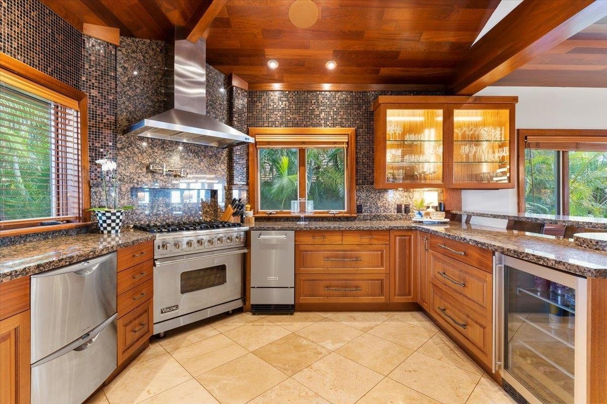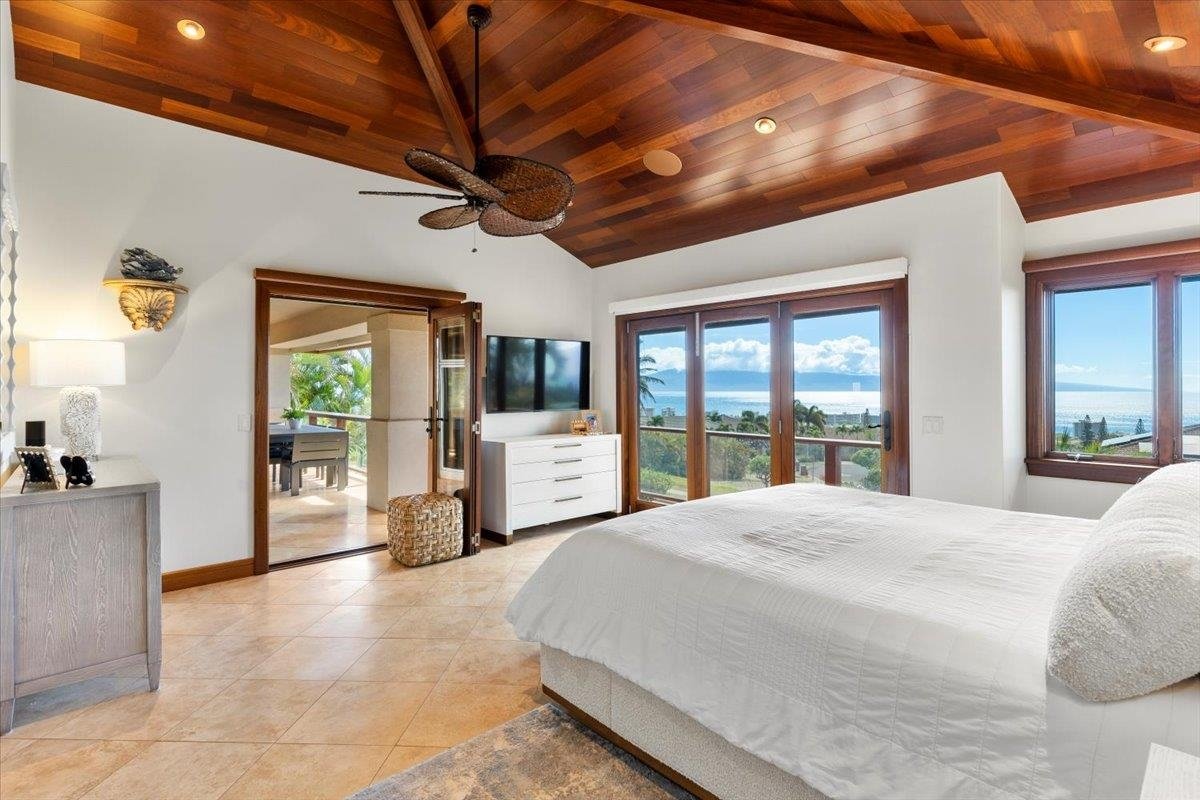 Indulge in the pinnacle of luxury living at 392 Wekiu Place, perched high in the esteemed Kaanapali hillside community of The Summit. This exquisite 3,420 square foot custom home offers unrivaled and endless ocean vistas. Commanding views stretch across the boundless Pacific Ocean, showcasing the neighboring islands of Lanai and Molokai, all crowned by the breathtaking spectacle of year-around Maui's sunsets. This luxurious haven is not only a masterpiece of design but also a testament to its harmonious integration with its tropical surroundings. Lush tropical landscapes envelop the property, creating a serene oasis where an herb garden thrives, offering the freshest ingredients for your culinary adventures. While the tropical panoramas are a central allure of this remarkable Maui residence, its allure extends far beyond. A gourmet chef's kitchen, adorned with top-of-the-line Fisher & Paykel dishwashers, Viking, Dacor, and KitchenAid appliances, beckons culinary enthusiasts. The kitchen effortlessly flows into a two-story family room and dining area, creating an inviting space for gatherings and relaxation. Folding glass doors gracefully unveil an expansive lanai, complete with an outdoor kitchen, two additional dishwashers, and an enchanting vantage point overlooking the heated pool, spa, and dancing gas tiki torches. Whether you're enjoying a meal al fresco, basking in the warmth of the sun, or marveling at the starlit sky, this outdoor oasis offers the perfect backdrop for every occasion. For your comfort and convenience, this home also features recently installed dual-zone high-efficiency air conditioning, complemented by a UV light sanitizing system, ensuring the perfect temperature and air quality year-round. Two on-demand hot water heaters provide an endless supply of hot water when you need it most. Three of the four bedrooms boast their own luxurious ensuite bathrooms, ensuring comfort and privacy for all. Descend to the lower level, where a second family room awaits, complete with folding glass doors that open to the additional lanai and the serene pool and spa area. This space is perfect for relaxation, entertainment, and taking in the mesmerizing views. A temperature-controlled, glass-enclosed wine cellar awaits, accompanied by yet another dishwasher on the lower level, enhancing your ability to entertain and savor the finest wines in style. Completing the experience, a two-car garage with space for a golf cart offers ample storage optio