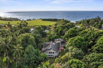 Oceanfront and bordered on both sides by streams and waterfalls, this plantation-style home is the perfect retreat. The 3 plus acres, zoned for conservation and agriculture, is completely off-grid, with a private well and photovoltaic system in place. The thoughtfully designed home captures dramatic views, enjoys consistent and comfortable air flow, and will take your breath away. This is Kipahulu at its finest.