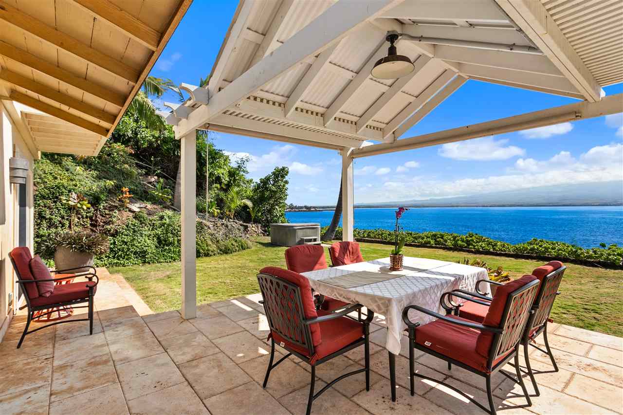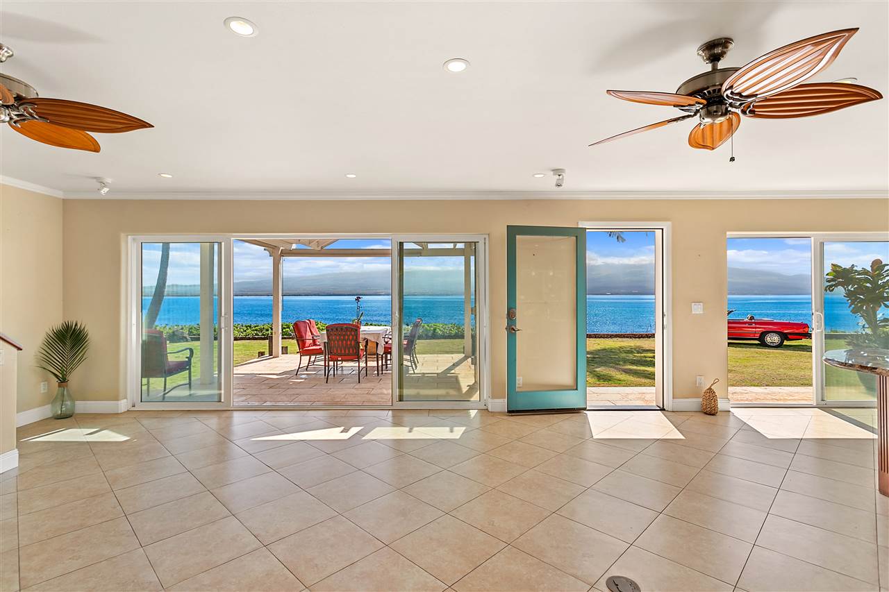 Oceanfront house located just past Ma'alaea Harbor, restaurants, shops and aquarium in a secluded enclave of only nine homes. Panoramic ocean views from Ma'alaea Harbor to Molokini Crater and everything in between. Wake up to sunrises over Haleakala and the peaceful serenity of the ocean just steps from your door. Surf, SUP, paddle canoe/kayak, dive, snorkel all from your "front yard" with easy ocean access. No need to go on a whale watch boat tour when you can do it from your own living room! This two bedroom three bath house surrounded by lush tropical landscaping was updated in 2009 with new plumbing, electrical, and a fully remodeled kitchen with granite countertops, all stainless steel appliances including a Sub Zero refrigerator, Kenmore Elite range and dual dishwasher drawers. Crown mouldings and light tile flooring lend to the easy feel as the upstairs master suite with ocean views is the perfect retreat. Bathrooms feature showers of glass block and detailed tile inlay of heliconia, monstera and honu. All of this can can be yours!.
