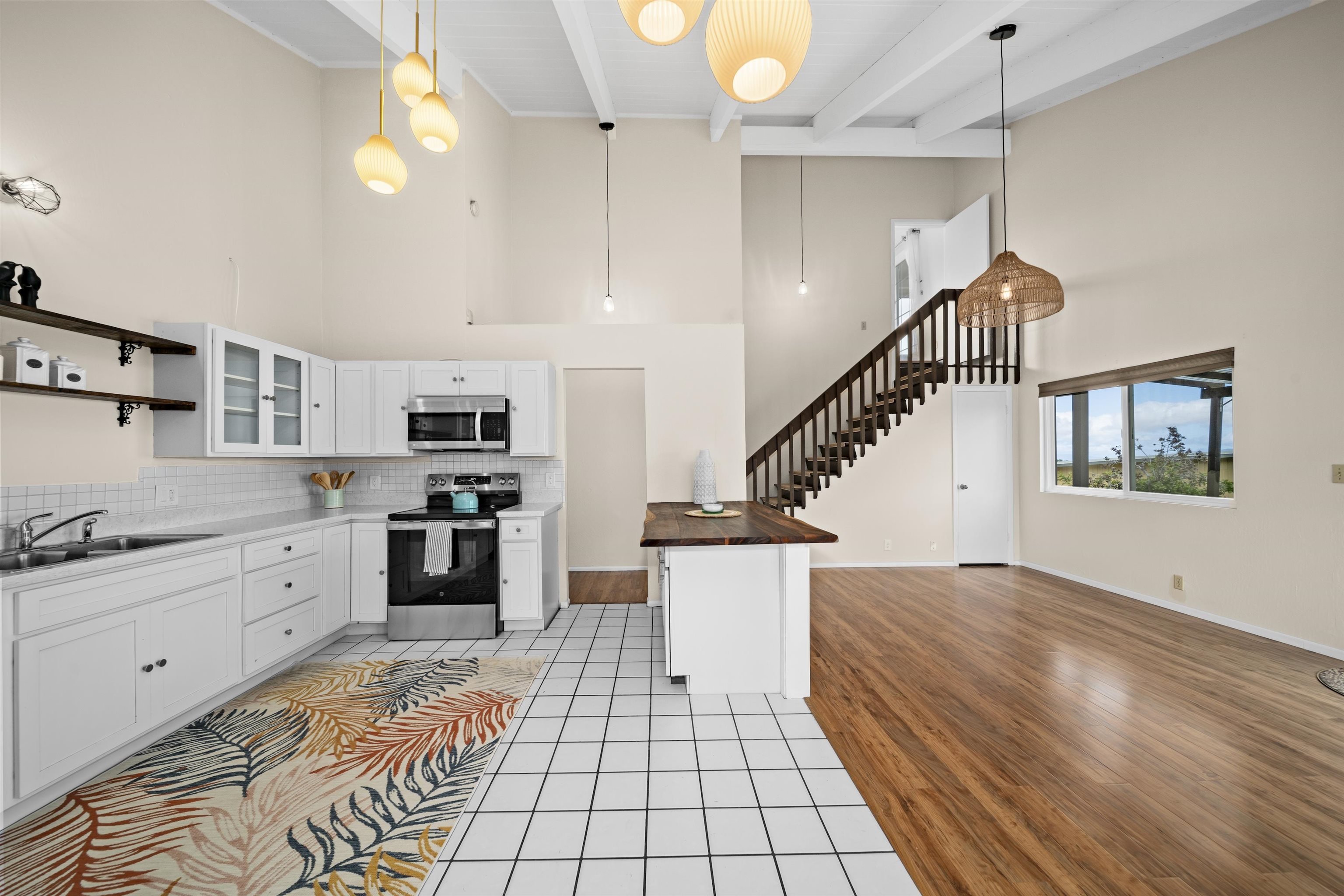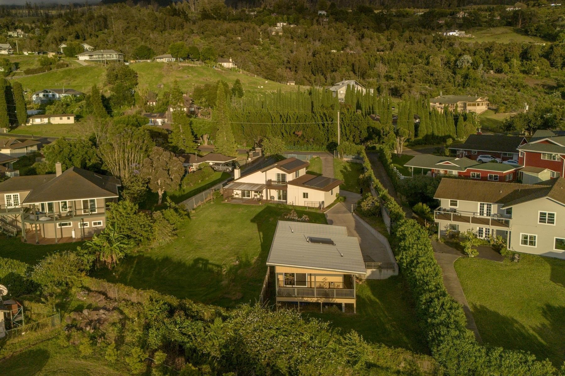 Elevate your Maui lifestyle to this beautiful Upcountry area. You will enjoy cool temps year-round that do not require air conditioning. Located a mere 10 min. drive to Pukalani and Makawao, where all shopping, schools and other conveniences are found, 40 Kaui Place has a lot to offer. With over a half-acre of Rural-zoned land there is plenty of room for gardening and other outdoor hobbies. The 3-bedroom, 3-bath main residence offers a flexible floor plan that could come in handy for extended family living and enjoys spectacular bi-coastal ocean and mountain views. The large solar PV system has a grid-tied pre-paid lease to keep your power bills to a minimum. Fire-up the classic wood-burning stove in the living room on cozy winter nights. Renovations over the years included an upgrade to all new double pane windows, new flooring, new kitchen and baths. The new detached cottage is "wrapped" by a privacy wood fence and enjoys stunning north shore ocean views from the covered lanai. With its high ceilings and contemporary finishes plus the attached garage, it has made a clever addition to the property and a wonderful rental unit. A modern septic system was installed in 2020 to service both house and cottage. The neighborhood is peaceful and exudes a sense of close-knit community with many long-time residents and no through traffic. Call today for a private showing. While drive-byes are ok, please do not disturb residents. (Note that Main House Dining room and Family room photos are digitally staged).