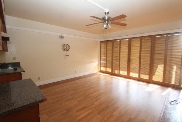 Studio now available in Waiakea Villas with a fresh look, ground floor unit close to parking lot with a covered lanai. Laundry area and pool available to occupants. Complex is within walking distance to shopping and restaurants. Fees include electric, water and sewer.