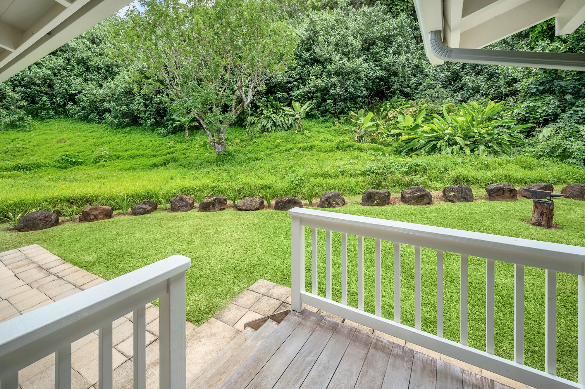 Outdoors a covered lanai provides ample seating and an open connection to the yard which features an organic vegetable & herb garden, stone-lined landscape beds, mature fruit trees, and vibrant, tropical foliage. Beyond the lawn the beach & sea invite you into a world of aquatic adventures - - surfing, fishing, diving, paddle boarding, beach combing and more.