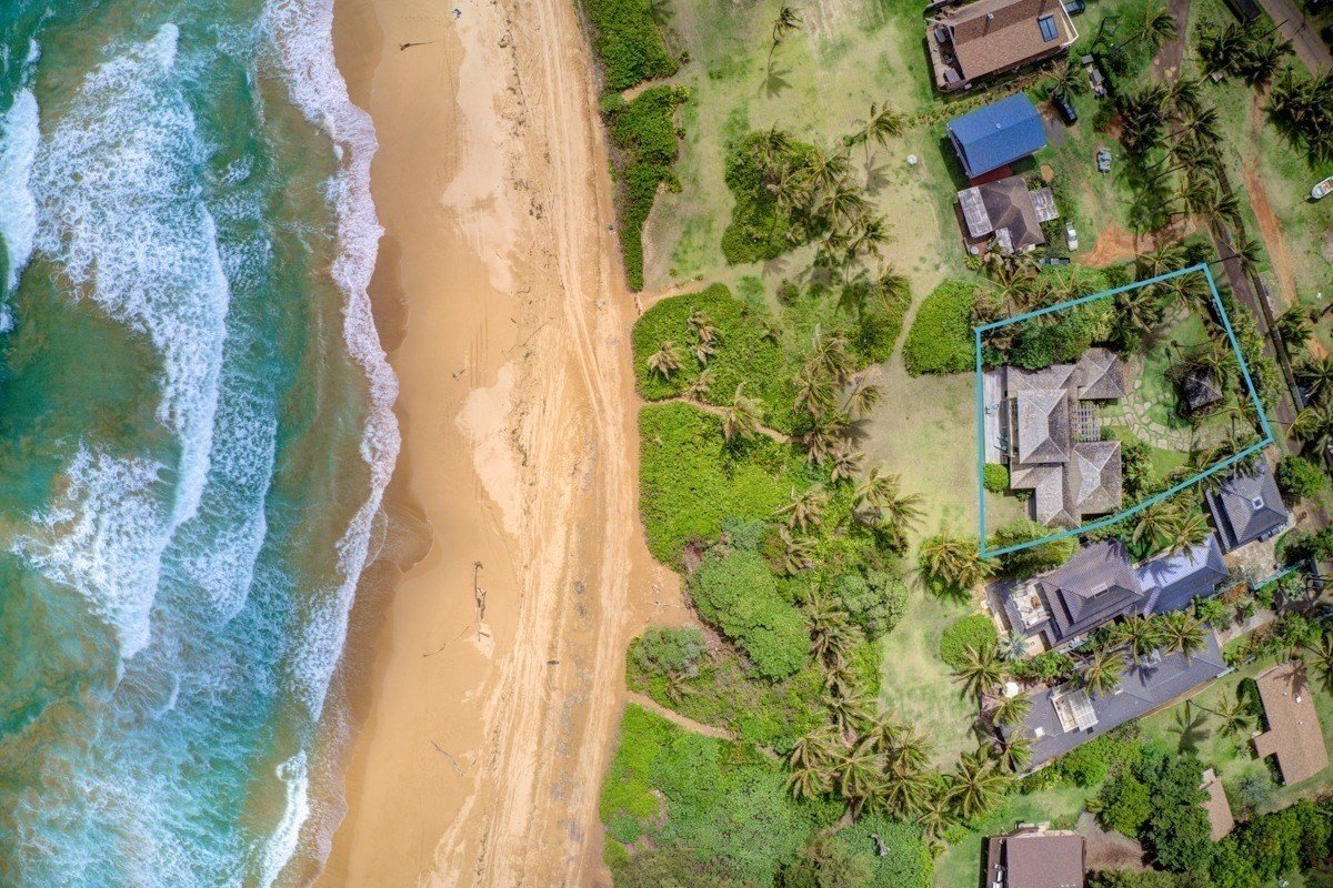 This extraordinary island style 4 bedroom, 4 bath home, surrounded by tropical foliage and swaying palm trees is also a licensed vacation rental (TVR) offered for sale on Anahola Beach. A lush green lawn separates the home from an expansive stretch of white sandy beach inviting you to swim, surf, snorkel, kayak, watch whales or just simply relax on your lanai and take in the tranquility of Kauai. The property has lava rock walls on three sides and features dual entry gates. The home is finished with high end native and natural materials. Vaulted ceilings add to the spacious living areas with spectacular views of the blue Pacific from almost every room. The gourmet kitchen features Sub Zero and Wolf Appliances and large walk in pantry. There are two master suites, as well as an additional two guest rooms, each bedroom offering an ocean view. This beautifully designed and furnished home, the quintessential tropical retreat, comes turnkey, ready to serve as a full time or part time residence or investment vacation rental.