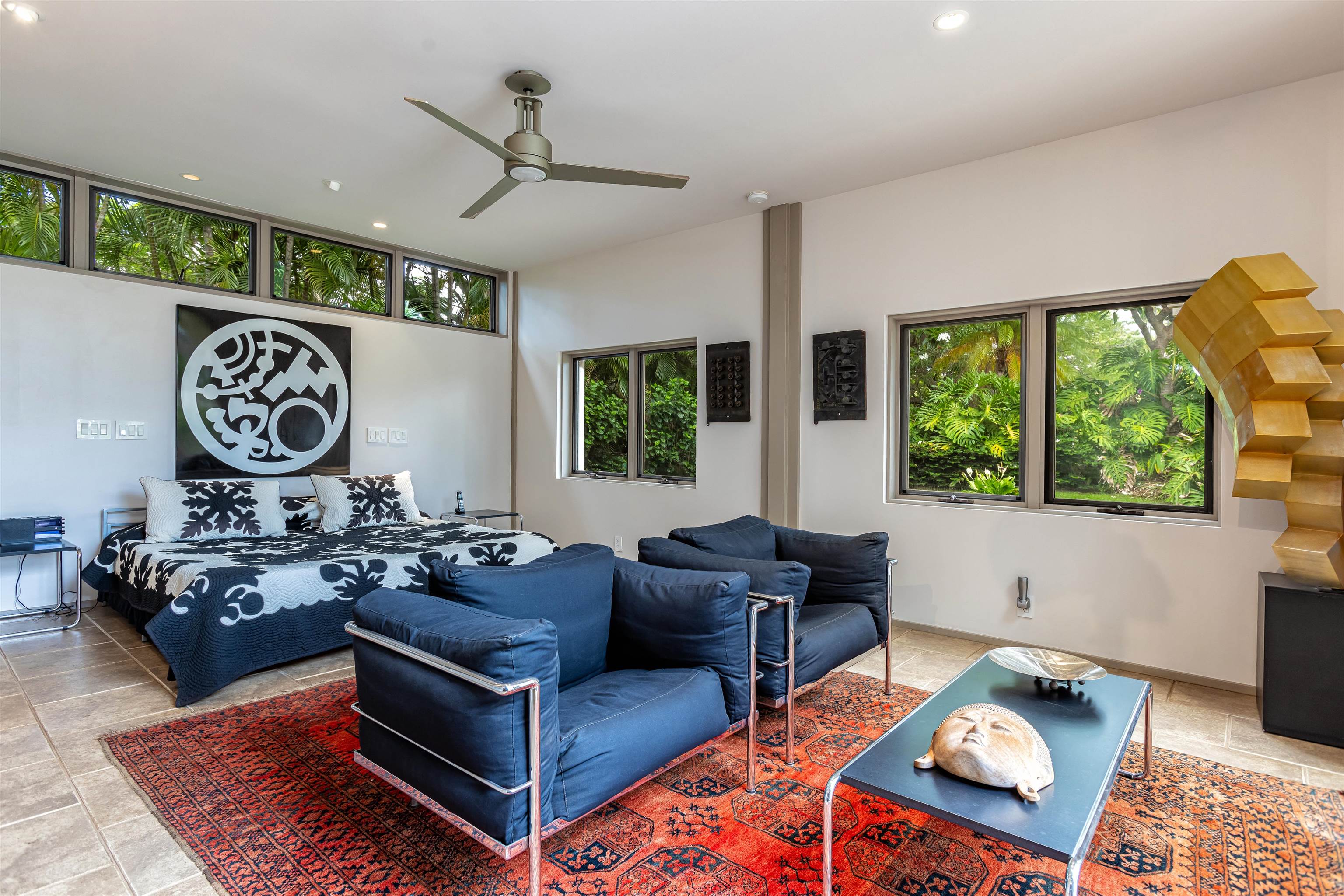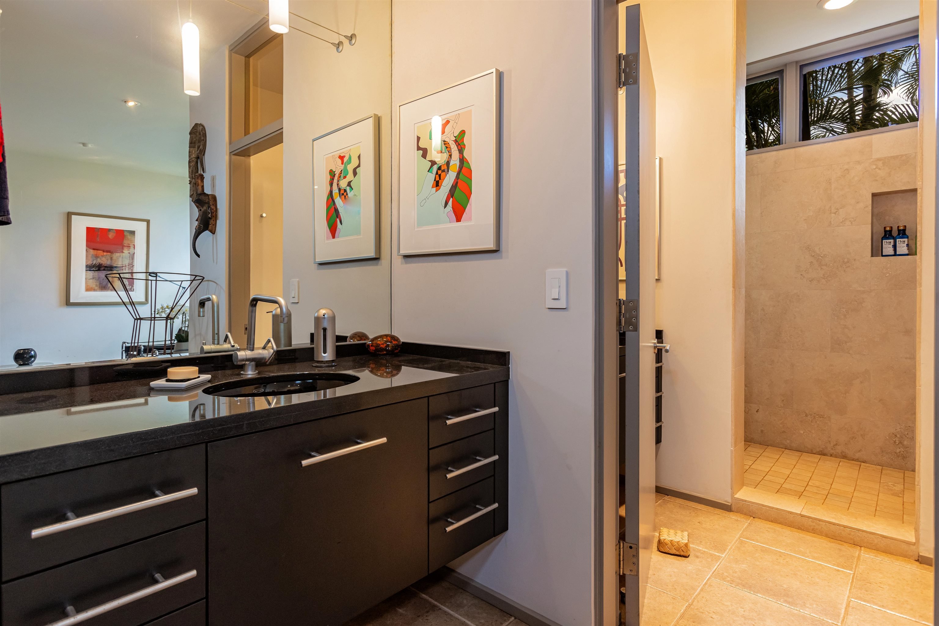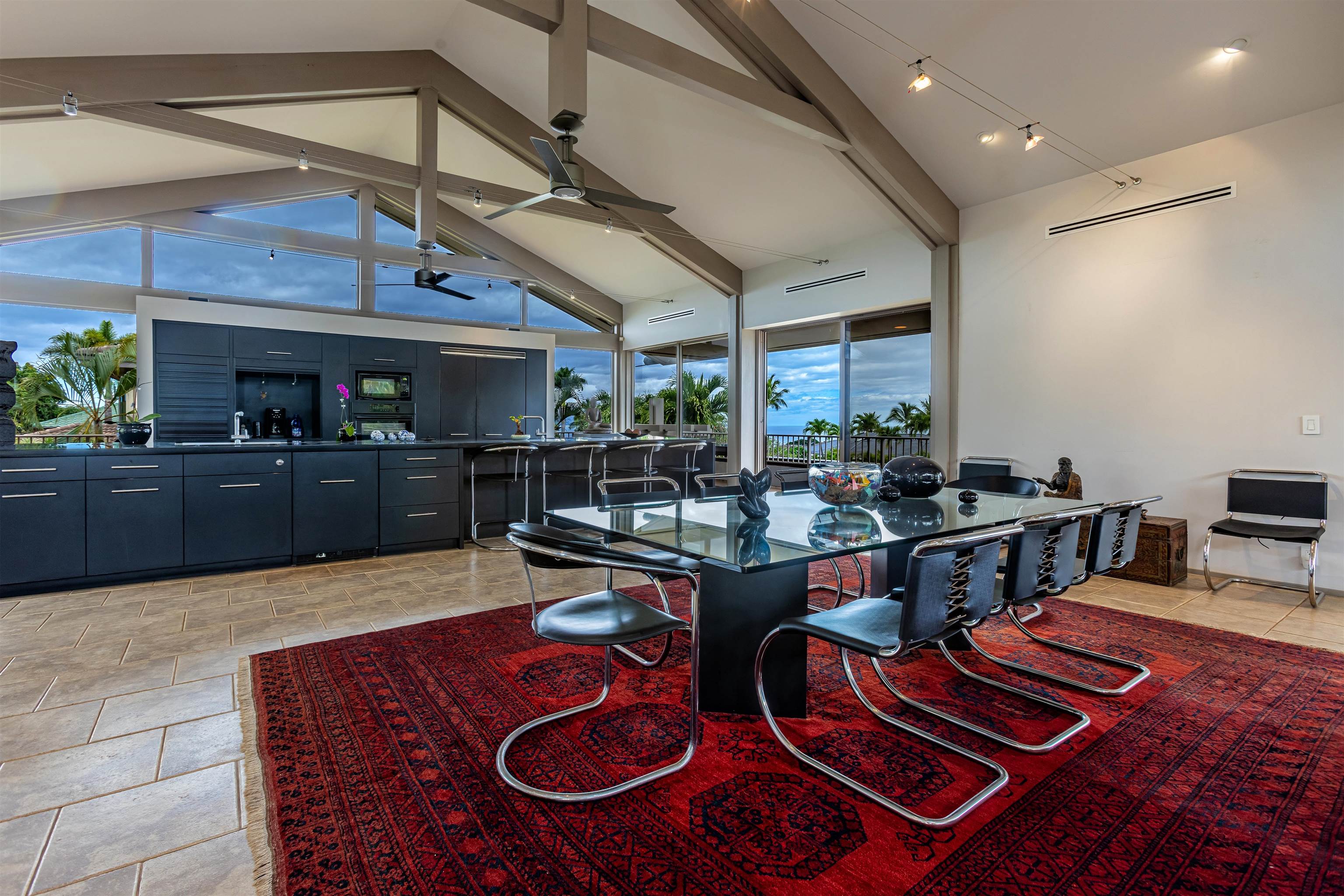 Elegant, sophisticated, exquisitely furnished, contemporary home located in quiet cul-de-sac in Wailea Golf Vistas. Great privacy afforded by ravine between Golf Estates and Golf Vistas makes lot feel much larger than 12,939 sq. ft. Enter on the ground floor into an Art Gallery. All the art work and all the furnishings in the entire home are included in the sale. Move right in! Primary bedroom suite on the ground floor opens out to a lovely private pool; huge guest room on the same level and a third bedroom which functions as a studio/office with a fantastic view of Molokini from one of the desks. Go up the beautiful teak stairs (might be room for an elevator in the garage or install stair chair as you age) and be stunned by the Great Room with panoramic views everywhere you look: Molokini, Lanai, West Maui Mountains, Wailea Blue Golf Course, Haleakala! Soaring ceilings and huge sliding glass pocket doors give expansive feeling of indoor/outdoor living. Sunrise and sunset lanais; deck surrounds entire upper level. Dumbwaiter transports groceries from garage to Kitchen. “Culinary Altar” kitchen counter perfect for entertaining. First Tesla Roof Haleakala Solar did in Hawaii. This unique home was designed and owned by a renowned, prize-winning architect and his wife. Here is a marvelous opportunity to own a one-of-a-kind home. Quick closing possible as survey has been completed. Great value here! Easy to see on short notice.