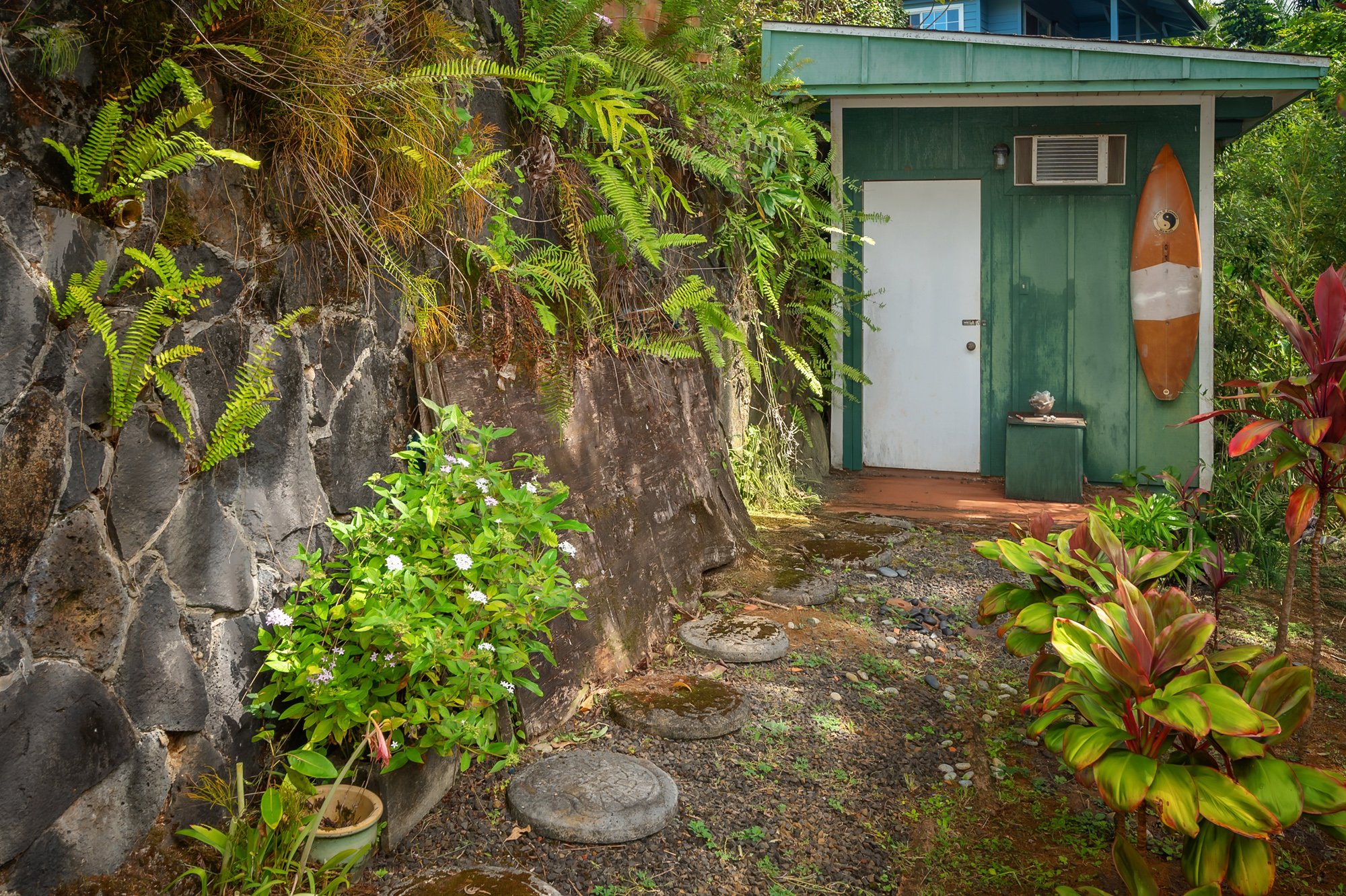 Wake up every day in paradise, surrounded by lush landscaping and a stunning view of the mountains and the Kilauea Slippery Slide waterfall.This 3BD/ 2.5 BA home is located at the end of a cul-de-sac and on a rim, offering a true sense of privacy.The home has been lovingly maintained and offers the following:Upstairs: *Open beam ceiling in the living and dining area *Sliding glass doors which open to a large covered lanai for enjoyment of the view *Primary bedroom with a sliding glass door that opens to the wrap-around lanai *Primary ensuite with a jacuzzi tub *Two guest bedrooms *Guest bathroom with two counter sinks *Open loft area just off the living roomDownstairs: *Beautifully finished basement studio of approximately 440 sqft that opens to a sitting area and the backyard *Separate laundry area with newly installed flooring and a brand new washer and dryer *Half bath and a generous storage areaOverall property features: *Beautifully landscaped grounds with lush landscaping *Lava rock wall and steps that lead to a wonderful storage shed *Outdoor shower for rinsing off after a day at the beach or showering under the stars *Photovoltaic system with Tesla battery backup *Two car garageLocated on the North Shore of Kauai, and minutes away from all the conveniences of Kilauea town, which includes coffee shops, great restaurants, the post office and pharmacy, groceries, and so much more.