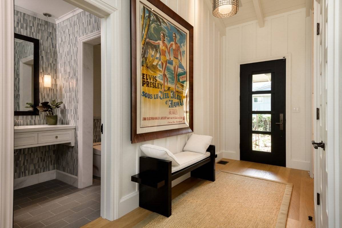 This brand-new, premium residence in the heart of Hanalei Bay, designed by renowned architect Kevin A. Clark, was completed in late 2022 and is a 2-minute stroll from both the pristine ocean and the vibrant shops and dining of Hanalei Town. This classic Hawaiian home is a testament to exquisite craftsmanship and the use of premium materials. Nestled on an expansive double corner lot spanning half an acre, this architecturally significant property boasts approximately 5,800 sqft of indoor and outdoor living space. With four spacious bedrooms and 4.5 bathrooms, it offers a private sanctuary surrounded by impeccably manicured gardens.