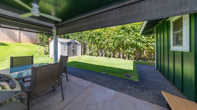 Impeccably maintained single-level ranch-style home in a prime central Kaua‘i location—just minutes from shopping, schools, airport, hospital, medical offices, beaches, and an oceanfront paved trail. Tucked at the end of a quiet cul-de-sac with a partial distant ocean view, the property offers privacy with vinyl fencing and thoughtful landscaping. This 1,493 sq ft home features 4 bedrooms, 2 full baths, a 2-car attached garage, and covered lanais in front and back. The spacious kitchen includes plentiful solid-surface countertops, soft-close cabinetry, a pantry, and a snack bar. Bathrooms offer dual lavatory sinks, porcelain tile surrounds, large mirrors, a cast iron tub or a walk-in shower with glass doors. The primary suite includes a walk-in closet, and secondary bedrooms have mirrored sliding closet doors. Also, two linen closets, a deep laundry sink, and a functional Family Drop Zone with USB charging ports and storage. Appliances included: range, hood, dishwasher, refrigerator, washer, dryer, and garbage disposal. Home is equipped with a 200-amp panel and a transferable 10-year limited structural warranty. Upgrades & Highlights: • Mitsubishi split-system A/C, 5 wall units with A/C and heat in bedrooms • Floating luxury vinyl tile flooring (extra tiles included) • Premium Hunter Douglas plantation shutters • Copper plumbing system with a tankless on-demand electric hot water heater • Solar PV system with 28 panels, 2 Tesla batteries, and Envoy monitoring (grid-tied, $0 electricity bill) • Solar attic fans • Wired surveillance system (16 channels, 8TB NVR) • Hurricane panels for all windows and patio door • Vinyl fencing, 8x10 shed on concrete slab • Premium sunshades on the back lanai • French drain system for effective yard drainage • HOA dues just $125 quarterly A rare opportunity to own a move-in-ready home with high-value upgrades in a desirable island location.