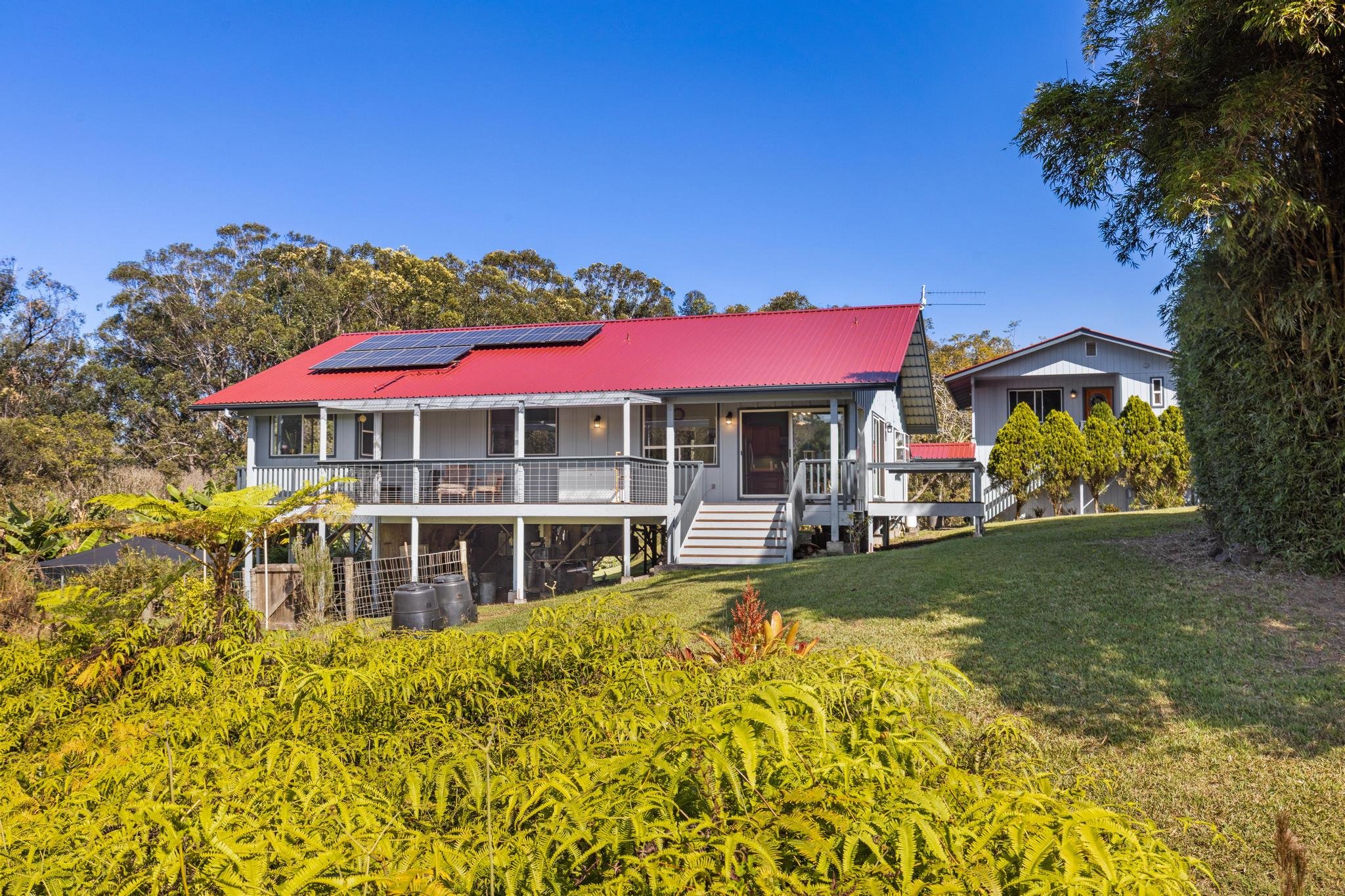 Welcome to Ahualoa Homesteads — a quiet part of the island that feels peaceful the moment you arrive. Just a short drive from Historic Honokaʻa Town, this 5-acre property offers space to breathe & land that’s enjoyable to walk.The grounds have a park-like feel, w/ rolling hills & cleared paths, all set against the backdrop of Mauna Kea. A seasonal creek runs along one side of the property, while the other sides border pastures w/ grazing animals. Around the yard you’ll find avocado trees, an orange tree heavy w/ fruit, bananas, coffee ready to pick (the sellers harvest & roast their own), native hardwoods like ʻōhiʻa & koa, jacaranda, + a well-kept chicken coop w/ egg-laying hens.The home was well thought out, well built, & well maintained. Tall ceilings & big windows bring in natural light, & the house sits up off the ground, creating useful storage underneath. Laundry utilities are inside & close to the bedrooms, & there is a coat closet/pantry near the front entry. All three bedrooms are nicely sized, w/ the primary suite at the end of the hall. Porches on 3 sides of the home, including a large covered back porch overlooking the yard — a great place to relax w/ your morning coffee & take in the views. The home is equipped w/ solar to keep utility bills low, a large water tank for your water needs, & fiber-optic internet to keep you connected — everything needed for simple living.Attached by a covered breezeway is an additional structure. The garage is on the lower level w/ room to park two vehicles. Upstairs is a cozy, recently finished guest space featuring a kitchenette, dining area, living space, two bedrooms, & a bathroom. It’s a great area for guests, hobbies, a caretaker, or a workspace.If you’re looking for a peaceful place w/ privacy, a solid home w/ flexible guest quarters, & the potential for a hobby-farming lifestyle, come take a look. It’s easy to appreciate the moment you step onto the land.