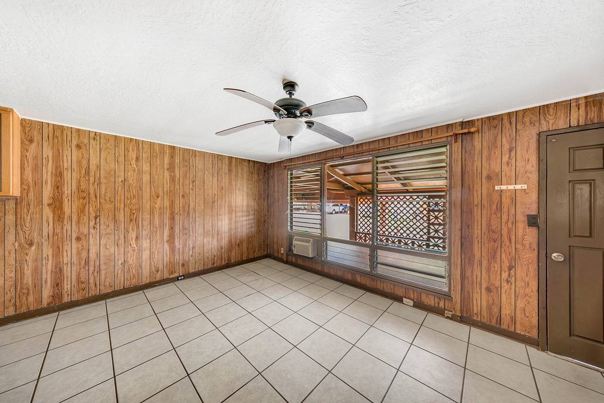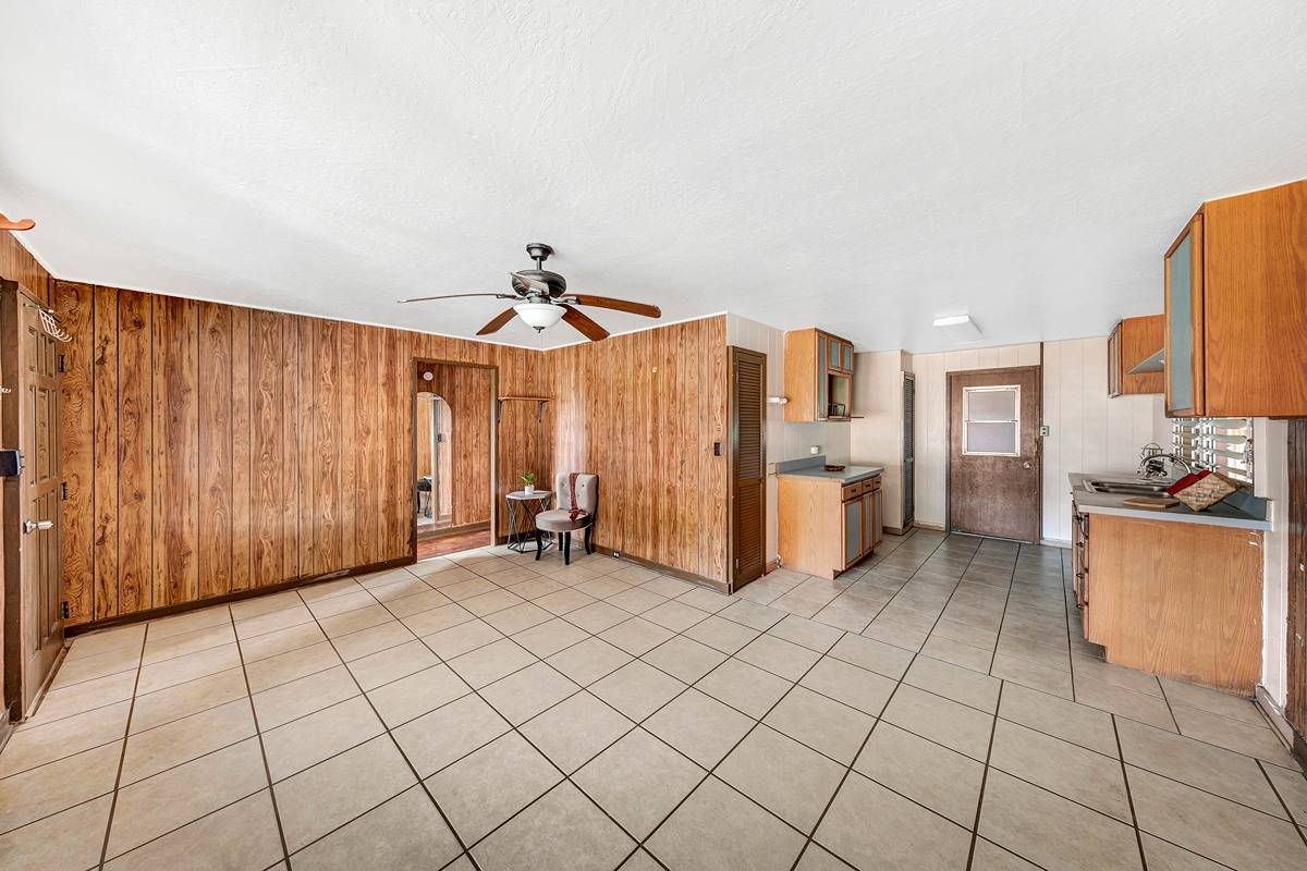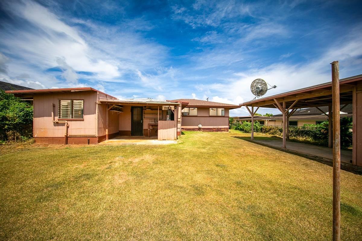 Lowest priced single family home in the Lihue District. Main home is 3 bedroom, 1 bath. Additional bathroom facilities and living area off enclosed laundry area. Potential galore! Well constructed storage/workshop in the back yard.