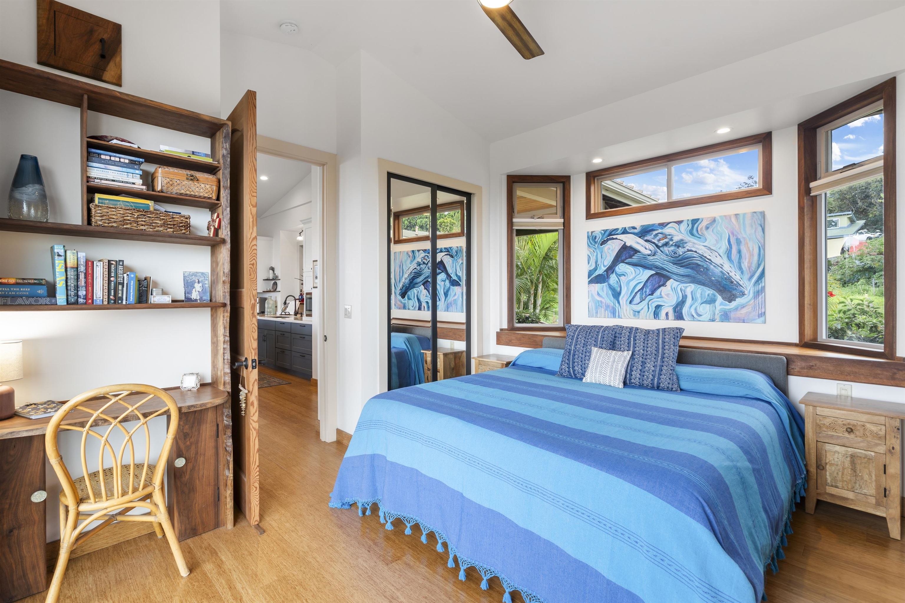 Perched ideally in Upcountry Kula on 1.52 acres of serene land, this 2-bedroom, 2.5-bathroom Custom home offers the perfect retreat—quiet, peaceful, and surrounded by nature. Built in 2020, this property boasts bi-coastal views and stunning year-round sunsets, with sweeping vistas of the West Maui Mountains and Haleakala. The climate and fertile land create an ideal environment for growing food and flowers, enhancing the property’s natural beauty. Inside, one will find exquisite custom walnut wood finishes throughout, adding warmth and character to every room. The flexible floor plan offers endless possibilities to fit any need, while the spacious workshop/ Ag Office & Storage area gives plenty of room for creativity. Outside, enjoy a bocce ball court, citrus trees, and expansive pastureland, creating a tranquil space for relaxation and entertainment. The property is conveniently located within walking distance to Kula Elementary School and Waldorf School, combining the best of upcountry living with easy access to local amenities. This exceptional property is more than just a home—it’s a sanctuary, where one can experience the beauty of nature and the charm of thoughtfully crafted details. Truly an exceptional Island Home. This is a CPR property.