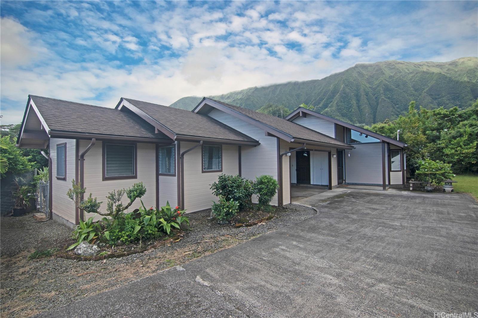 Rare opportunity to purchase well-loved and beautifully maintained home on almost 3 acres of land in lush, evergreen 'Ahuimanu, with the backdrop of the majestic Ko'olau Mountain range. This home will charm you with its windows to the great outdoors and unique architectural features. Explore the potential of owning a property that goes from 'Ahuimanu to the Woodridge subdivision, and was placed in the Community Growth Boundary of the Ko'olau Poko Sustainable Communities Plan (buyer to do own due diligence; see supplement). Or simply enjoy your own relaxing retreat or farm in one of Oahu’s neighborhood gems, complete with a small, gurgling stream, short hiking slope and fruit trees. Experience the joys of open space and country living amidst abundant nature, yet convenient to shopping, eateries, mellow Kane'ohe Town and tranquil Kane'ohe Bay. Here’s your chance to create a place you’ll always want to come home to!