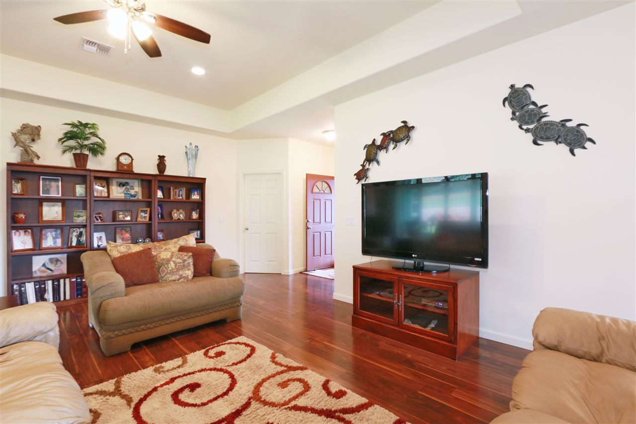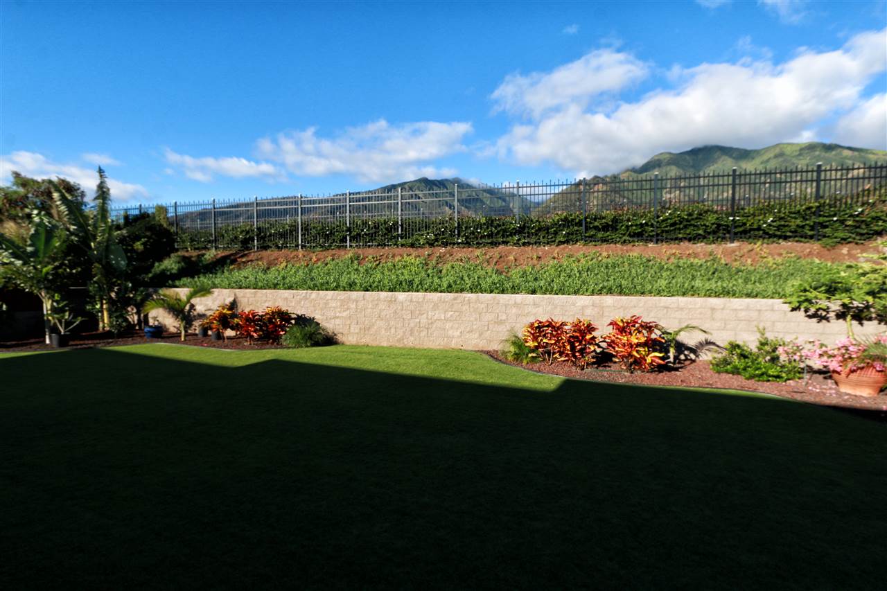 Brand new custom home in Waiolani Mauka completed in March 2015. Meticulous and in pristine condition, this thoughtfully designed 3 bedroom and 3 bath home is spacious at over 1800 squ foot and resides on a incredibly maintained finished landscaped lot of over 9400 squ feet. The landscaping needs to be seen to be truly appreciated. Enjoy the amazing West Maui Views from all areas of the home or simply reside on the private covered lanai in the backyard. Home abuts to community greenbelt and park. Amenities include Photo voltaic panel, solar water, central air conditioning, wood laminate and ceramic tile flooring. Located in the small and newer subdivision of Waiolani Mauka, this home is one of the best opportunities on the market.