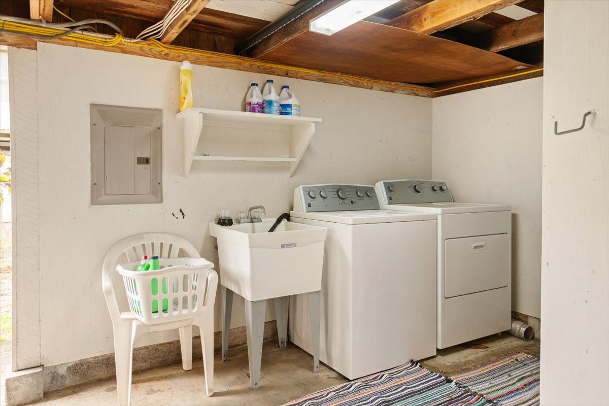 All the charm of a 1940 Plantation House with the benefits of a 2015 permitted renovation. Effective age in Public Records is 1995.Renovation included new wiring, new plumbing, new water heater, new roof, new eaves, new interior ceilings, windows, new interior and exterior walls, new finish flooring, new kitchen and bath cabinets, and new countertops.Second staircase gives access to under house storage and laundry (813 sf) and covered carport.RD-3.75 Zoning allows for a second dwelling on the lot. Tremendous opportunity for rental or residence plus rental.Sale includes appliances and window coverings.