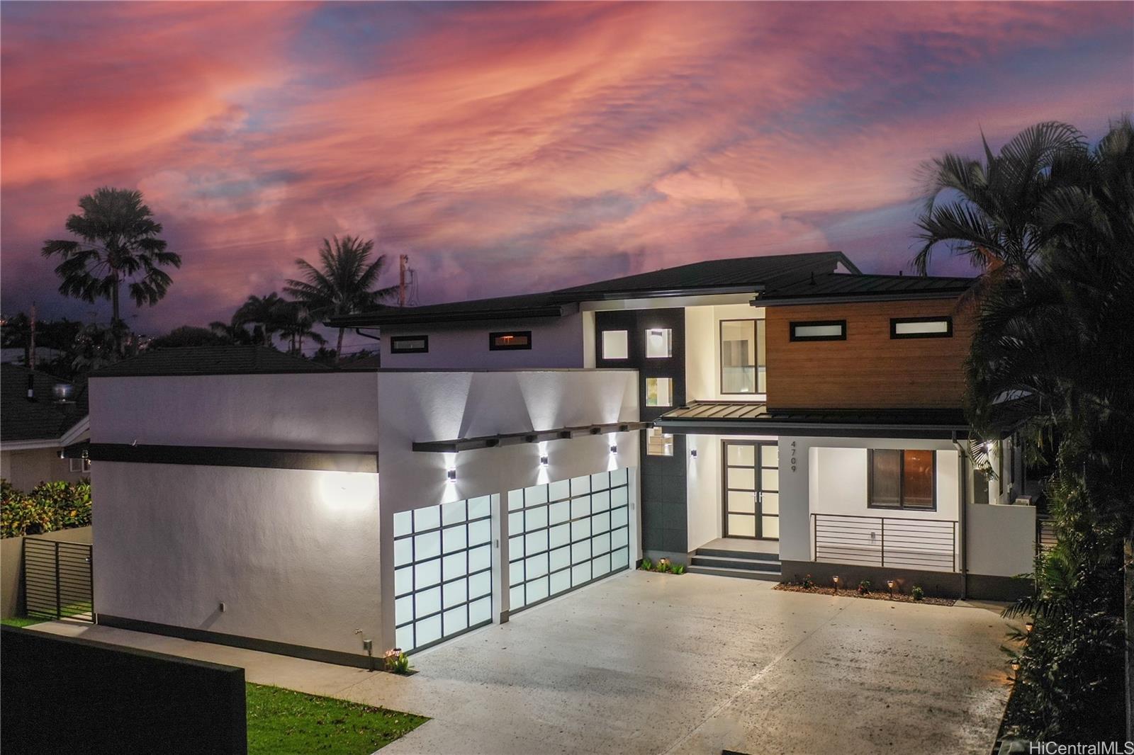 BRAND NEW LUXURY HOME in prime Kahala neighborhood! You will fall in love with this bright and modern family home that boasts 4 bedrooms and 3 1/2 bathrooms. A stunning floor plan with great indoor and outdoor living and entertainment options are just a few key features of this newly build home. There are two master suites, one on the main floor and one in the upper right hand wing of the home. The pool has its own entertainment section with a build in table and an area for beach chairs beautifully surrounded by shallow water. High end finishes are featured throughout the home, including Bosch appliances, hard wood floors, accordion style lanai doors and another upstairs entertainment area. You will love the oversized three car garage that includes chargers for electric cars. The beautifully landscaped and fenced in yard is just perfect for extra privacy and outdoor living. The house comes with a one year warranty.