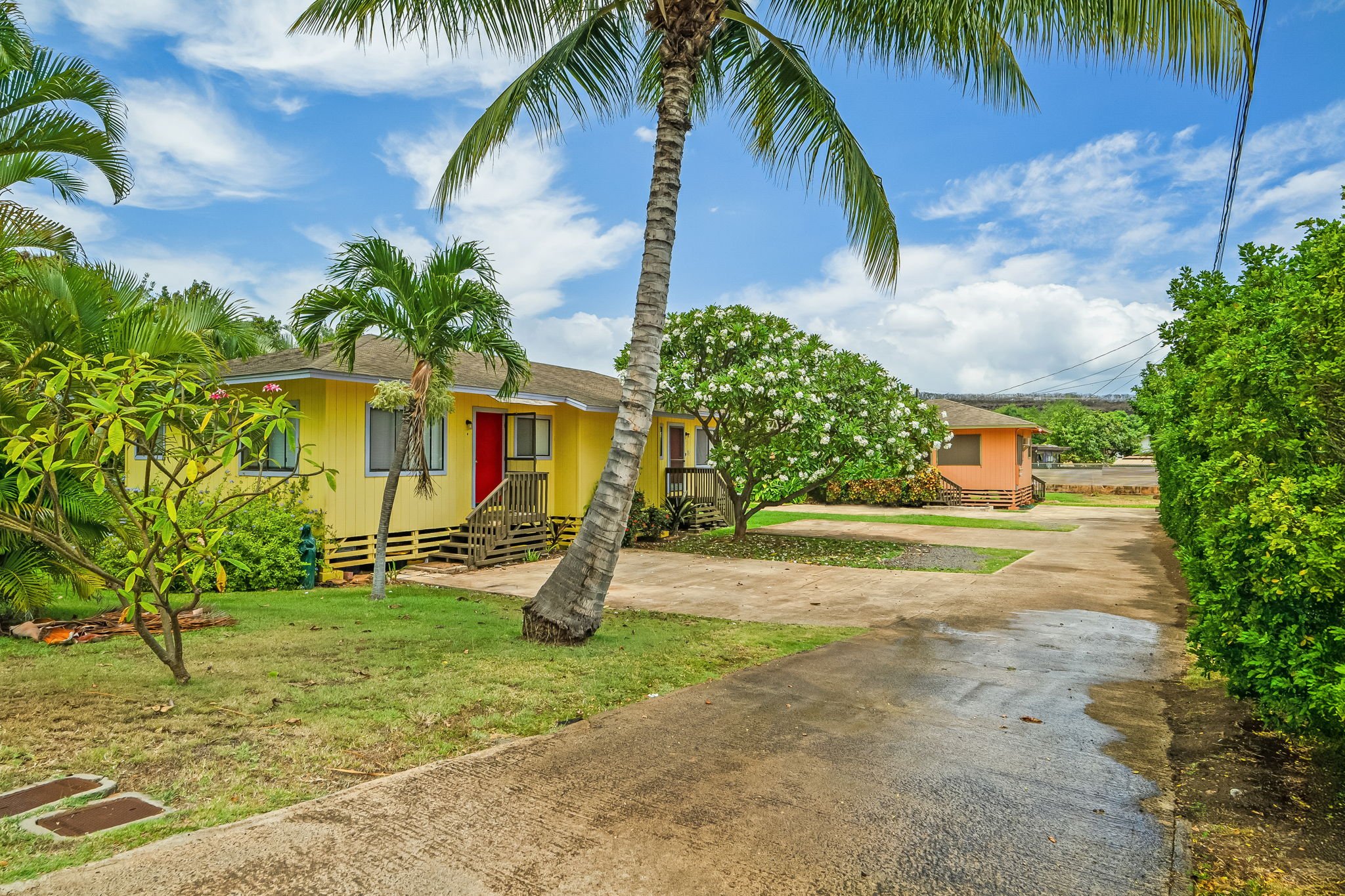 This charming duplex is located within walking distance of Waimea town, amenities and beaches. The property hosts two individual 2 bedroom 1 Bath units with a concrete 2 vehicle parking pad for each unit. Both units have a range, fridge and a living room air conditioner. One of the units is furnished and hosts a washer and a dryer on the back porch. There are possibilities of keeping both rented or living in one and renting out the other. Property has lovely well maintained landscaping and irrigation system. Don't pass up this chance to own a piece of property just minutes from historic Waimea town. See MLS #719362 for second the flaglot duplex for sale. Buy both for a unique rental opportunity!!!