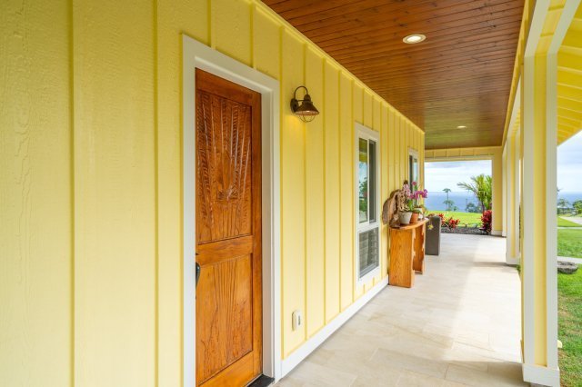 Positioned in the sought-after area of Kukuihaele, one of the finest areas on Hawaii island, this expansive 9+ acre property stands as a wonder. Welcomed by concrete driveways & meticulously crafted rock walls – guide down to the newly constructed 2 bedroom, 2 bathroom residence which showcases quality craftsmanship. No shortcuts were made when crafting this home, from the beautiful kitchen w/ Wolf range, vaulted ceilings with wood insets, carved hardwood doors, TechShield insulation, solar water heater, backup generator, fully air conditioned, & much more. The primary suite is cozy w/ a spacious walk-in closet & ensuite bath w/ double sinks. A convenient laundry room w/ abundant storage adds to the home. Outside the wrap-around lanai, you are invited to unwind & take in the sweet ocean views & breezes. This home is being sold completely furnished & turnkey, & fiber optic internet is available to the home.