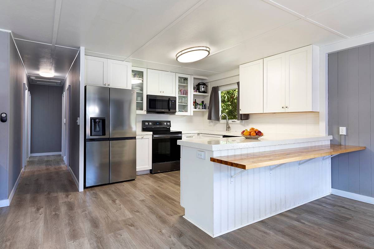 This lovingly renovated home in Kukuihaele is the epitome of tropical living. Many upgrades (see list below) have been made to this 3 bedroom/3 bath home, making it stylish and comfortable. The addition of a 256 sq-ft covered deck off of the kitchen makes a great gathering spot for meals and BBQs.A separate 120 sq-ft accessory building provides the potential for various uses. The county zoning is CN-10, making this an attractive opportunity for entrepreneurs. (See addenda for county list of permitted businesses in this commercial neighborhood zoning area.)Mature fruit trees are on this 15,091 sq-ft property, including lychee, mango, orange, pear, tangerine, avocado, papaya, banana, with excellent growing capabilities for other crops. This home is within walking distance to Waipio Valley lookout, as well as Kukuihaele Park.Upgrades and features: * All electrical and plumbing has been replaced * Kitchen: New cabinetry, poured-concrete countertops with epoxy finish * Appliances: most purchased Jan 2023, fridge and washer purchased Jan 2024 * New windows, window trim, doors, light fixtures and fans * New flooring in the public spaces * Primary bedroom and accessory building have air conditioning units * Primary Bath renovated in 2024 * Bedrooms: mirrored closets, refinished original hardwood floors * Attic - insulation added above ceiling * New concrete poured in the carport, extra space * New backyard covered deck, 256 sq ft, with stylish railing, smoky gray PVC roofing * Backyard is completely fenced *Two tool sheds and two upraised planting beds * Outside bathroom next to laundry completely renovated with new tile * Lot was regraded to divert water around the home with a dry-well * Septic plans are in place for the new buyer * 20’ storage container included in the sale Come and see this beautiful home with its paradisical landscaping and ideal tropical weather.