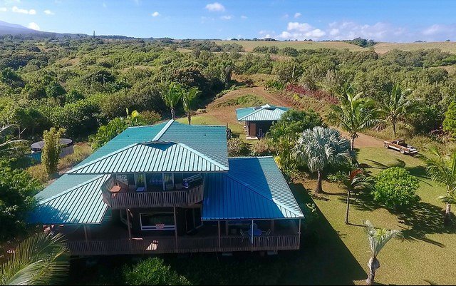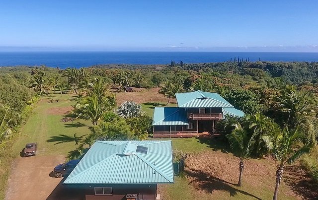 Beautiful north shore estate offers superb privacy and open space, with over 26 acres and incredible views in all directions. 2-story 3bd/2ba pole house has open floor plan and wrap around covered lanai. Upstairs makes a great office or exercise room. Bamboo and tile floors, Corian counter tops, cedar lined closets, high open beam ceilings. Detached garage is quality built with open beam ceiling and laundry. Bonus items: storage shed full of building materials; artesian well; water catchment system; PV system, solar hot water. This is off-grid living. Buyer gets: propane tanks; Honda generator; Isuzu 4x4 farm truck; Craftsman 54" riding mower. Enjoy the farm lifestyle immediately. Only 20 minutes from Paia, Haiku or Makawao town. The large property is .7 miles below the Hana Highway, with 3 entrances along Puniawa Rd. Much of the land is level and cleared making good pasture land or riding trails. Wooded areas provide natural habitat for wildlife and permaculture options. Many good cleared building sites with views are waiting to be developed. The location of the house is adjacent to very large undeveloped parcels and natural boundaries, to ensure long lasting privacy. Property taxes are currently low with Agricultural usage and homeowner exemption. Mature fruit trees include: coconuts; citrus; lilikoi; cacao; many kinds of bananas. Exotic colorful tropical flowers and trees. Don't miss your chance to own this former Marlon Brando estate! Seller financing for the right buyer. Seller has active real estate license in California.
