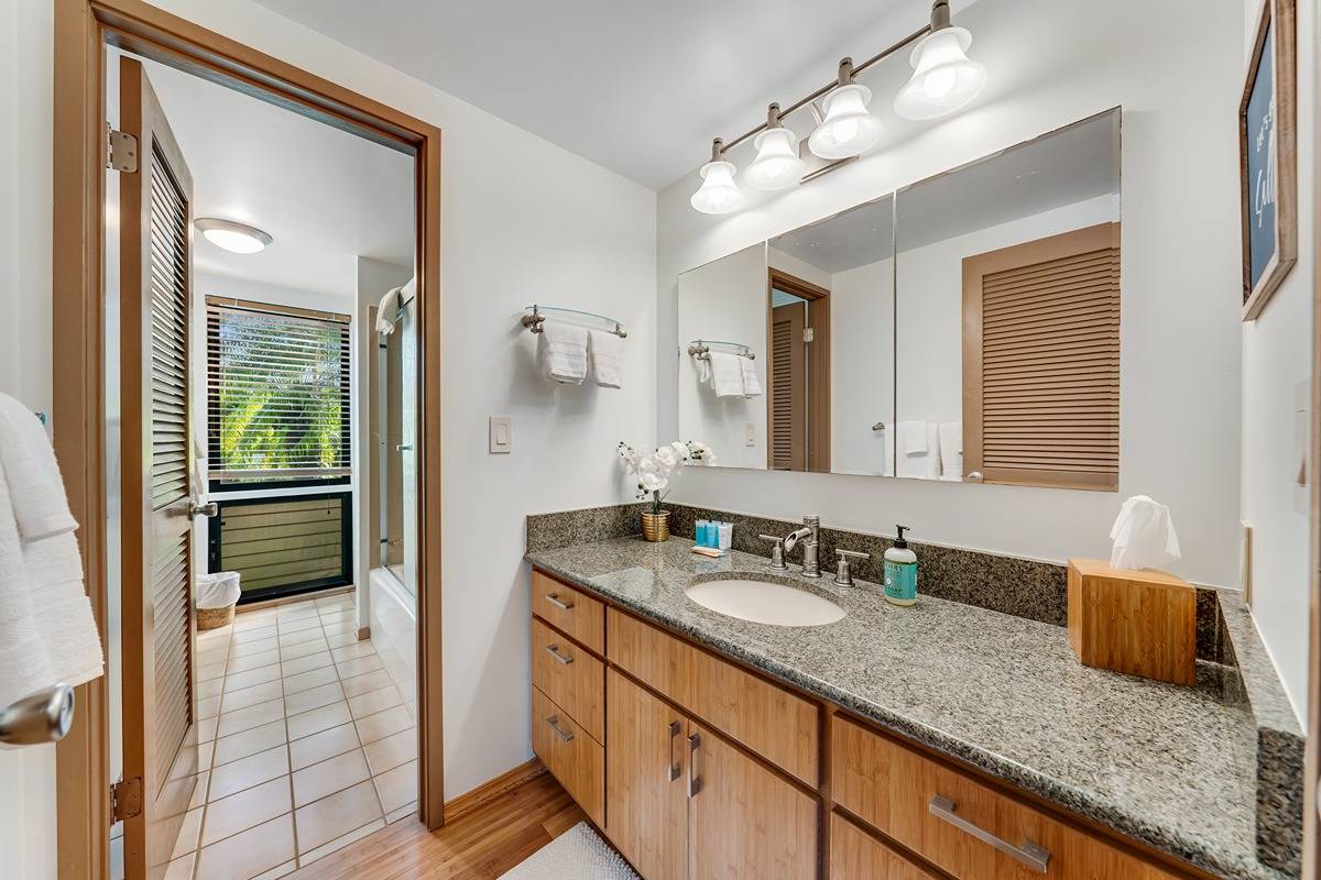 Each of the four bedrooms is a sanctuary of tranquility, offering privacy and comfort. Each bedroom has it's own unique view of either waterfalls, or the Makai golf course. The three well-appointed bathrooms gives convenience for both residents and guests.