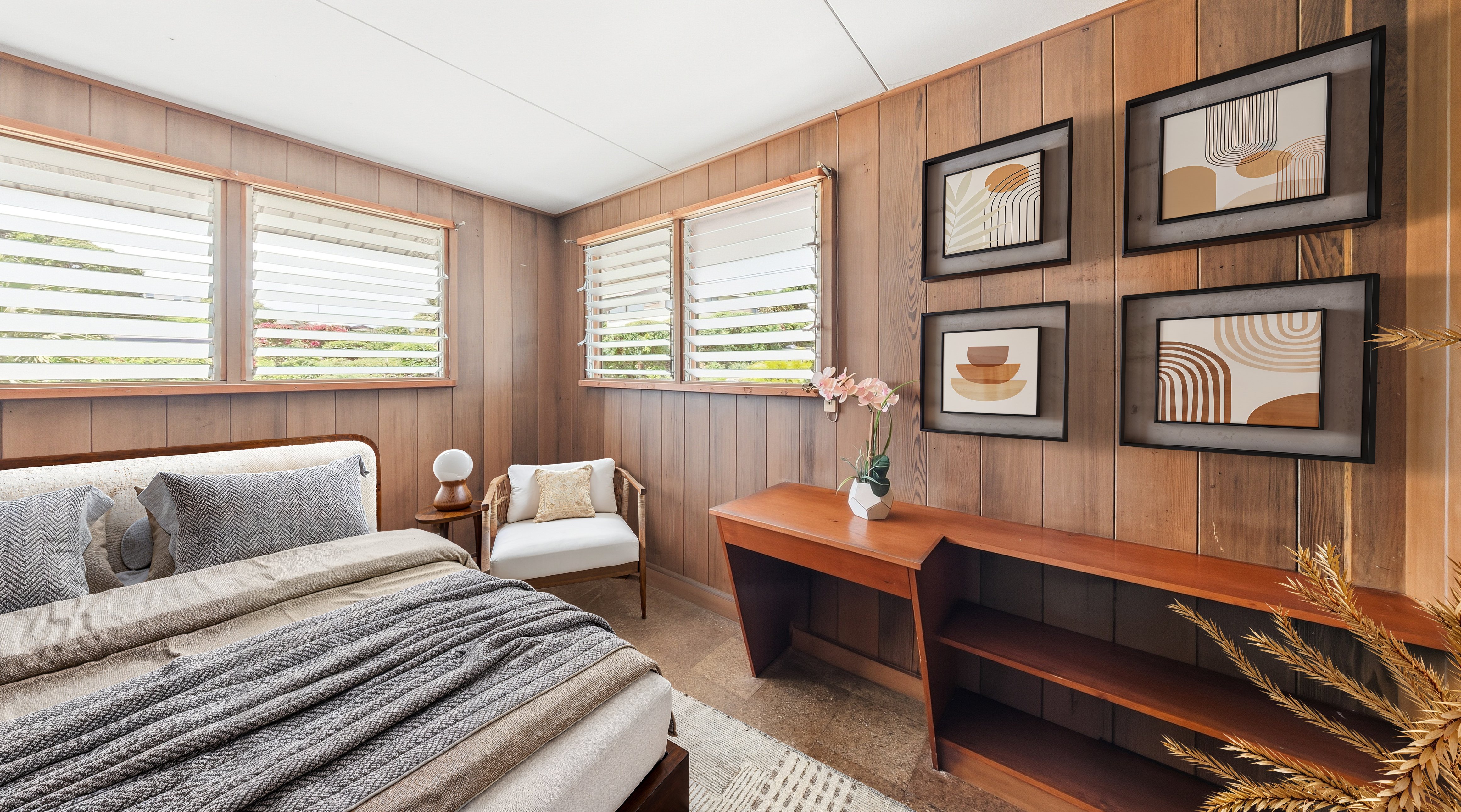 Classic charm awaits with this well-maintained 3 bedroom, 2 bathroom home located on a spacious corner lot in desirable Kapaa. This residence has been cared for over the years and is ready for its next owner to add their personal touch. Enjoy the trades from the outdoor patio, offering a true sense of island relaxation and gathering place.Beyond the main residence, you'll find a detached boat/storage shed plus a storage room in the garage, perfect for hobbies, storage, home gym, artist's studio or a home project space.Only a few minutes away from Kapaa Town, offering an abundance of amenities and a variety of grocery stores, natural food markets, banks, schools, gas stations and essential services.