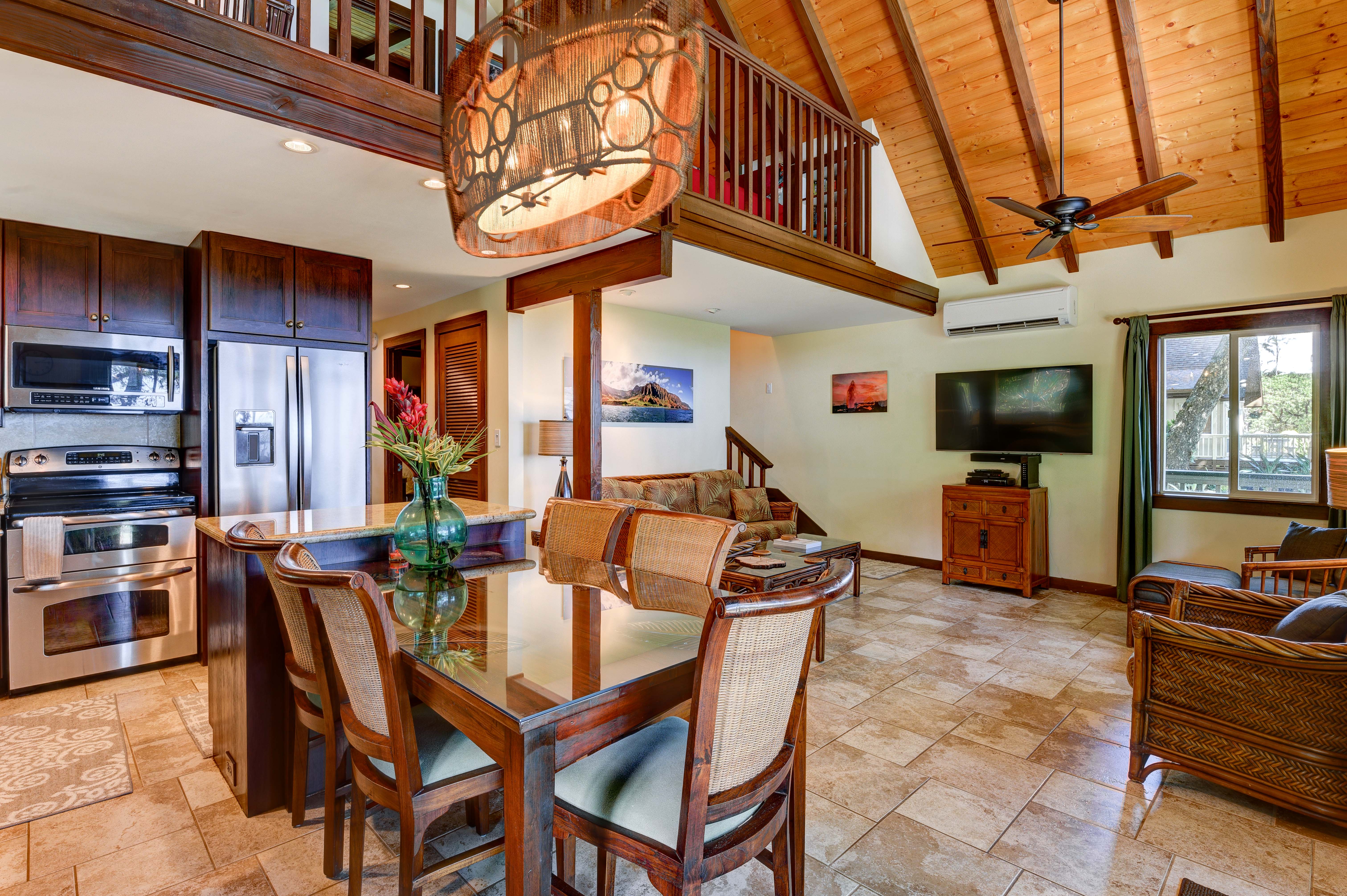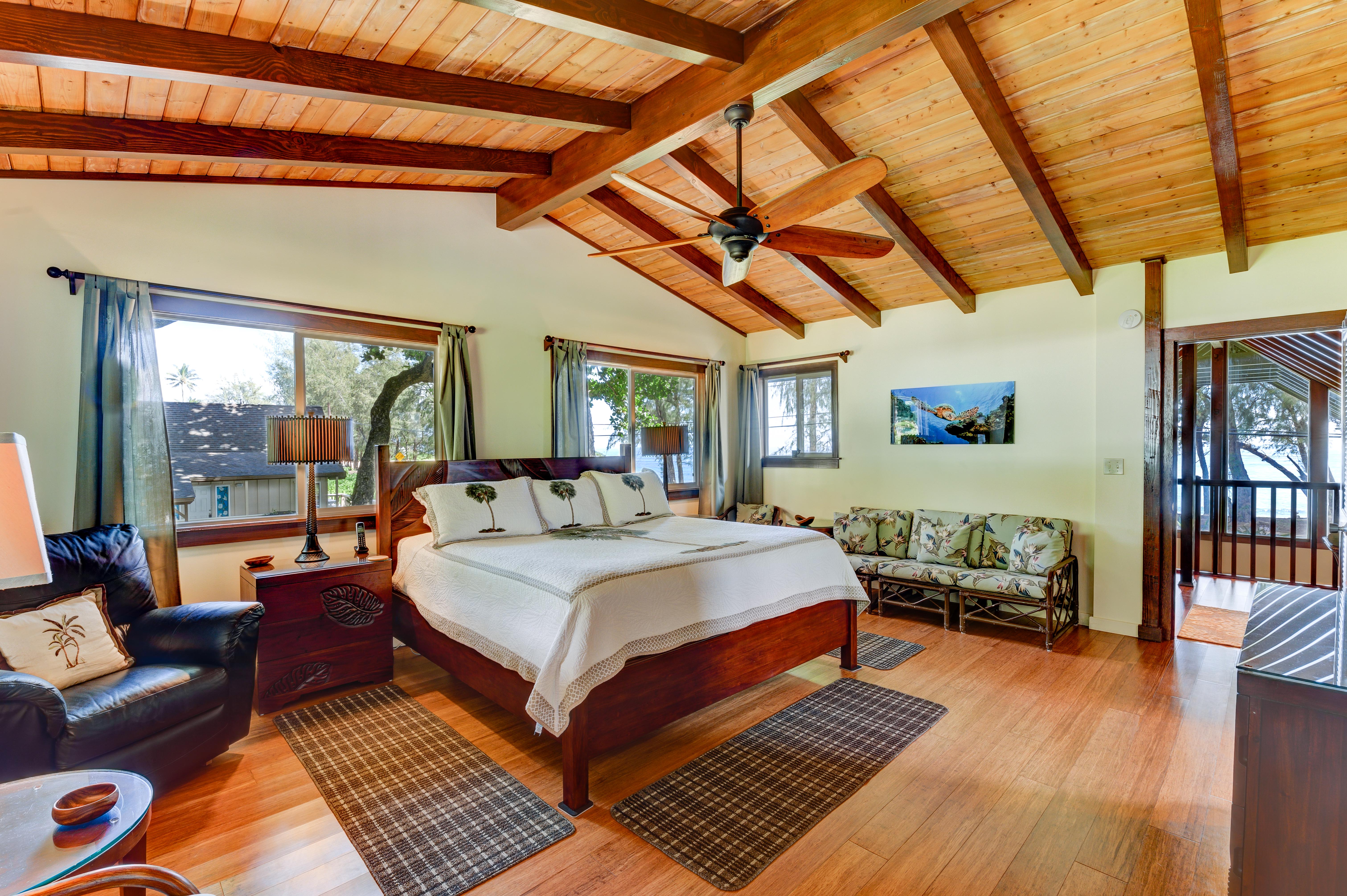 Experience coastal living at Hale Kamapua‘a, a beautifully maintained home with panoramic ocean views and easy beach access. Everything in this 3-bedroom, 3-bath home has thoughtful design, quality finishes, and modern comfort throughout.The open-concept living area features designer furnishings, a large flat-screen TV, and seamless indoor-outdoor flow to a spacious wraparound lanai—perfect for dining, lounging, and taking in the ocean breezes. The gourmet kitchen is equipped with granite countertops, state-of-the-art appliances, and ample prep space for entertaining or family meals.Two bedrooms are located on the main level, each with its own private en suite bath and generous closet space. One offers ocean views, while the other is tucked quietly toward the back of the home for privacy.Upstairs, the primary suite is a serene retreat, entered through an ocean-view library with an office desk and reading nook. The A-frame architecture opens to coastal views from the library, bedroom, and the primary suite's private lanai.The home’s first-floor lanai extends across the entire front and wraps around the side, furnished with multiple dining and seating areas to enjoy sunrises, sea breezes, and unforgettable sunsets.Located just across the street from the beach, this property enjoys shared ownership of the oceanfront parcel directly in front—ensuring protected, permanent ocean views. The Opakapaka Grill and Bar, a popular beachfront restaurant, is just a short stroll away.Offered fully furnished and turn-key, Hale Kamapua‘a is an active, licensed vacation rental (TVNCU-4206). Sale is subject to all confirmed rental reservations.