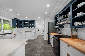The ocean views are truly unparalleled, making it feel like you're practically on the water. With a pristine beach just steps away, you'll have instant access to the ocean for endless enjoyment. Imagine feeling the trade winds as you relax in this beautifully renovated home.Location, location, location! Enter through the covered breezeway , large enough to store a fishing boat, and walk up to views stretching all the way to One Hotel. Step into an open, airy living filling the home with natural light. This fully remodeled home offers all new decking, railing, new flooring throughout, new copper plumbing below house, almost all windows and interior doors have been replaced to reflect pride of This well-maintained property features a Flexible floor plan that allows for a long term rental while while still having the option to occupy part of the home full time or for friends & family to come visit. Enjoy the easy beach access across the street, a two minute walk to the nearby coffee shop or just a short stroll down the beach to Opakapaka Fish House.