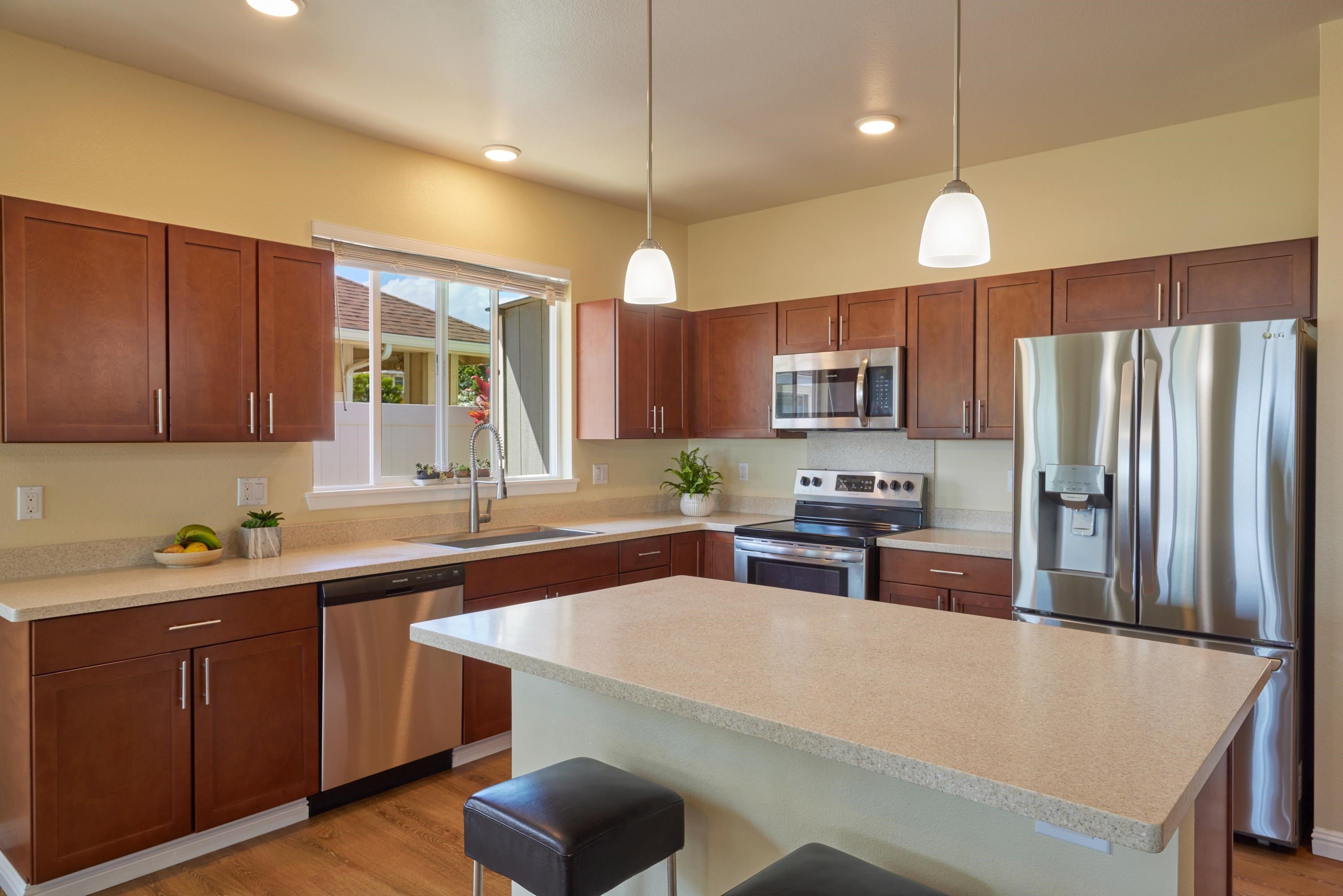 VIEWS! VIEWS!! Introducing an exceptional opportunity to own a slice of paradise in Wailuku. Nestled along the front row of Ke Alohilani is this stunning single-level home; three spacious bedrooms and two beautifully appointed bathrooms, all within 1,519 sqft of meticulously maintained living space that exudes the charm of a model home. Step inside to discover a bright and inviting interior, enhanced by brand new split AC units all new luxury plank wood flooring and modern appliances, including a refrigerator and dishwasher purchased in April 2025. The freshly painted exterior and thoughtfully landscaped yard create an appealing first impression that welcomes you home. Prepare to be captivated by the unobstructed views of the ocean, Haleakala, West Maui mountains and the vibrant city below—perfect for those tranquil mornings or sunset gatherings. The fully fenced yard offers both privacy and security, while the covered lanai beckons you to entertain friends and family amid the beauty of the Hawaiian landscape. With all furnishings and wall art negotiable, you have the chance to personalize this beautiful space to match your style. And with immediate occupancy available, you can start enjoying your new life in this serene setting without delay. Don’t let this incredible opportunity pass you by to experience the magic of island living!