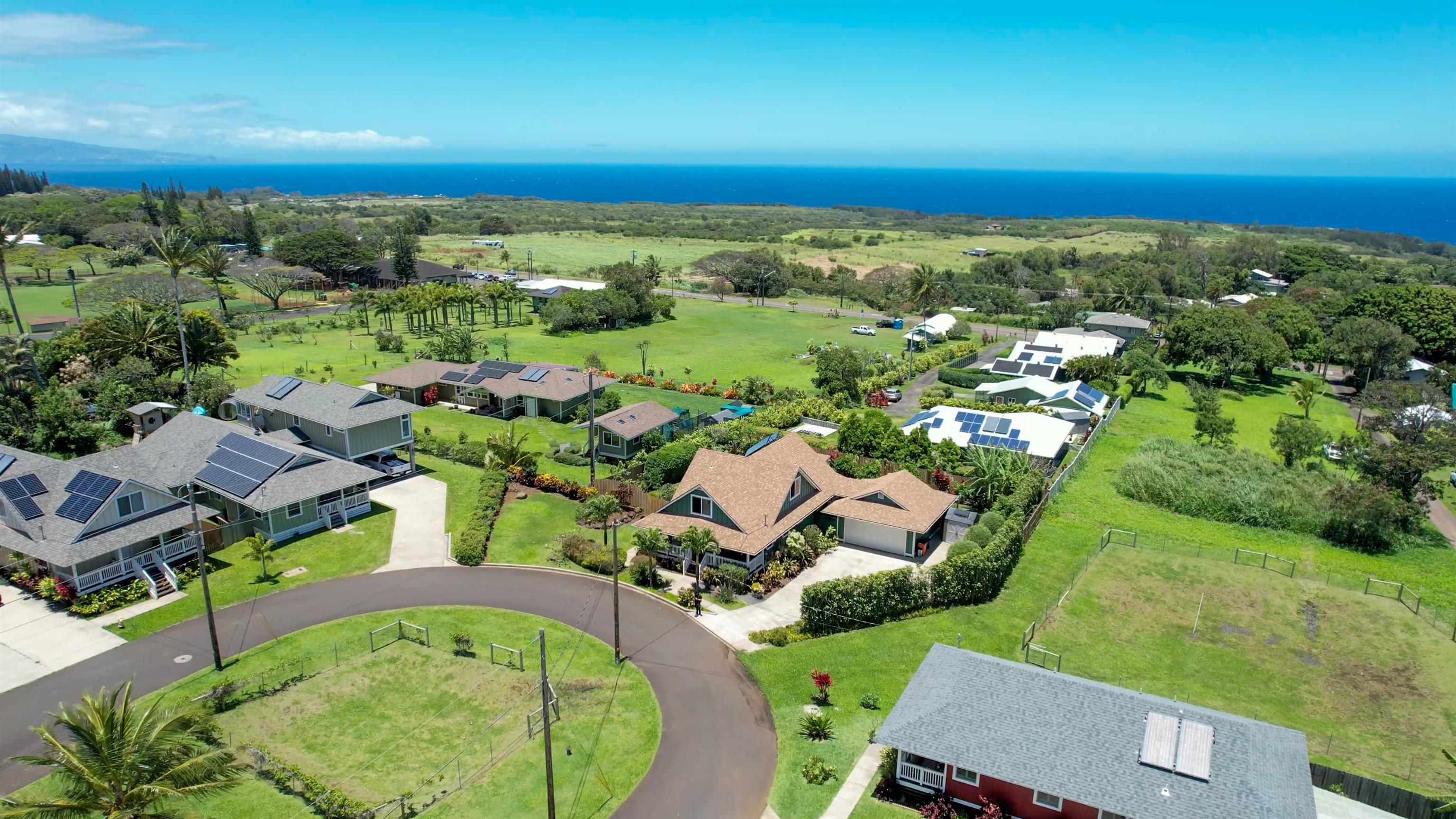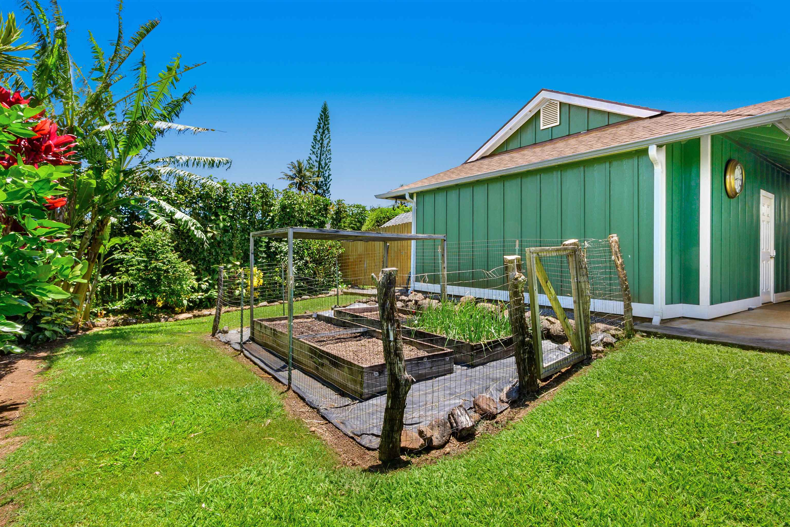 Welcome to the essence of North Shore living in this plantation-style home located in Haiku. Positioned at the end of a tranquil lane within a gated, private, 33-home neighborhood that offers a unique urban farm sustainable lifestyle, this residence was built in 2018 and showcases both ocean and Haleakala views from multiple rooms and vantage points. Step inside and be greeted by the charm of a well-designed layout, featuring a first-floor primary (w/ AC) and the remaining three bedrooms being on the second floor with great views. The spacious chef's kitchen includes stainless steel appliances and easy access to the ocean view back lanai with bbq setup. The beautifully landscaped backyard is a haven for garden enthusiasts with 15+ types of fruit trees and full irrigation. As an added bonus, the property includes an additional 5000 square foot deeded farm plot, enclosed by a fence. This plot showcases a variety of fruit trees, including avocados, citrus, mangoes, bananas, cherries, and more. Here in Pauwela Homes, you'll discover the freedom to immerse yourself in the diverse lifestyles that Maui has to offer...adjacency to Haiku Elementary + Park, close proximity to Kuiaha Bay and Peahi (world famous surf spot), and less than 20 minutes into town. Ownership in this community instills a strong sense of pride, as no other owners have listed their properties. The home is being offered fully furnished and turn-key, allowing you to seamlessly transition into the Maui lifestyle and start relishing all that this remarkable property has to offer. Property is a Residential CPR.