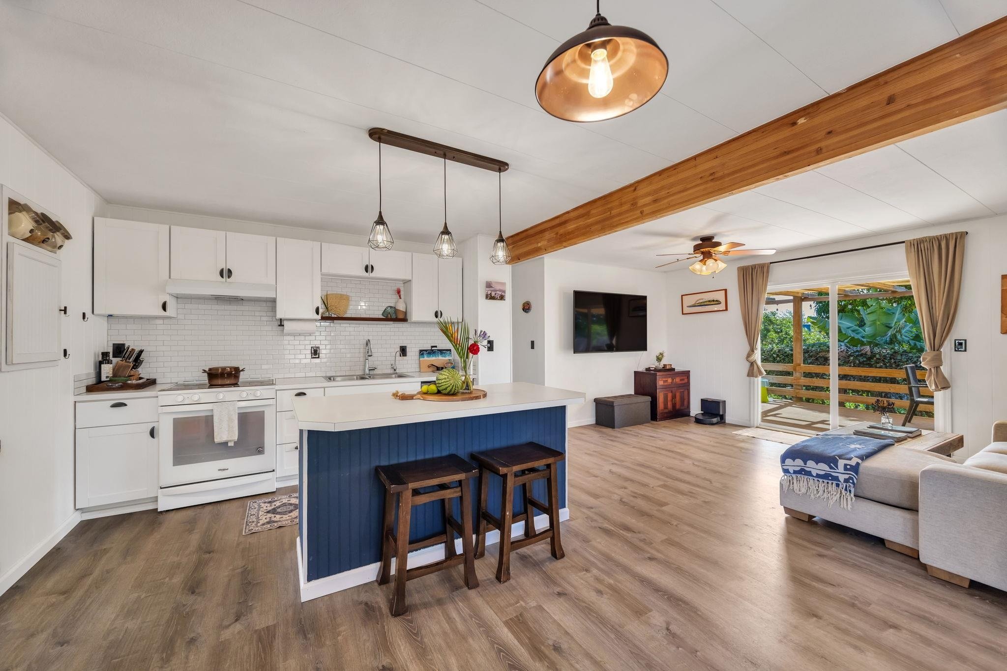 Welcome to this charming 3-bedroom, 1.5-bath home in the heart of Napili-thoughtfully reimagined as a cozy, modern bungalow nestled in a lush, garden-like setting. Bright, airy, and filled with thoughtful upgrades, this is the perfect place to call home. Inside, enjoy an open-concept layout with a custom bay window that adds both natural light and extra seating. The updated kitchen features brand-new cabinets and durable life-proof vinyl flooring that flows throughout the home. The remodeled bathrooms include stylish subway tile and smart design touches for added comfort. The primary bedroom features a mini split A/C system for cool, restful nights. Storage is plentiful, with smart solutions throughout the home to maximize space and functionality. Step outside to your private lanai, ideal for relaxing, entertaining, or soaking in the ocean and Molokai views. The beautifully landscaped yard offers multiple garden spaces and even your own avocado tree for fresh, homegrown treats. Move-in ready and ideally located just minutes from Napili Plaza and the world-renowned beaches of Napili and Kapalua Bay, this is your chance to own an affordable slice of paradise. At the time of listing, it's the most attractively priced home in West Maui.
