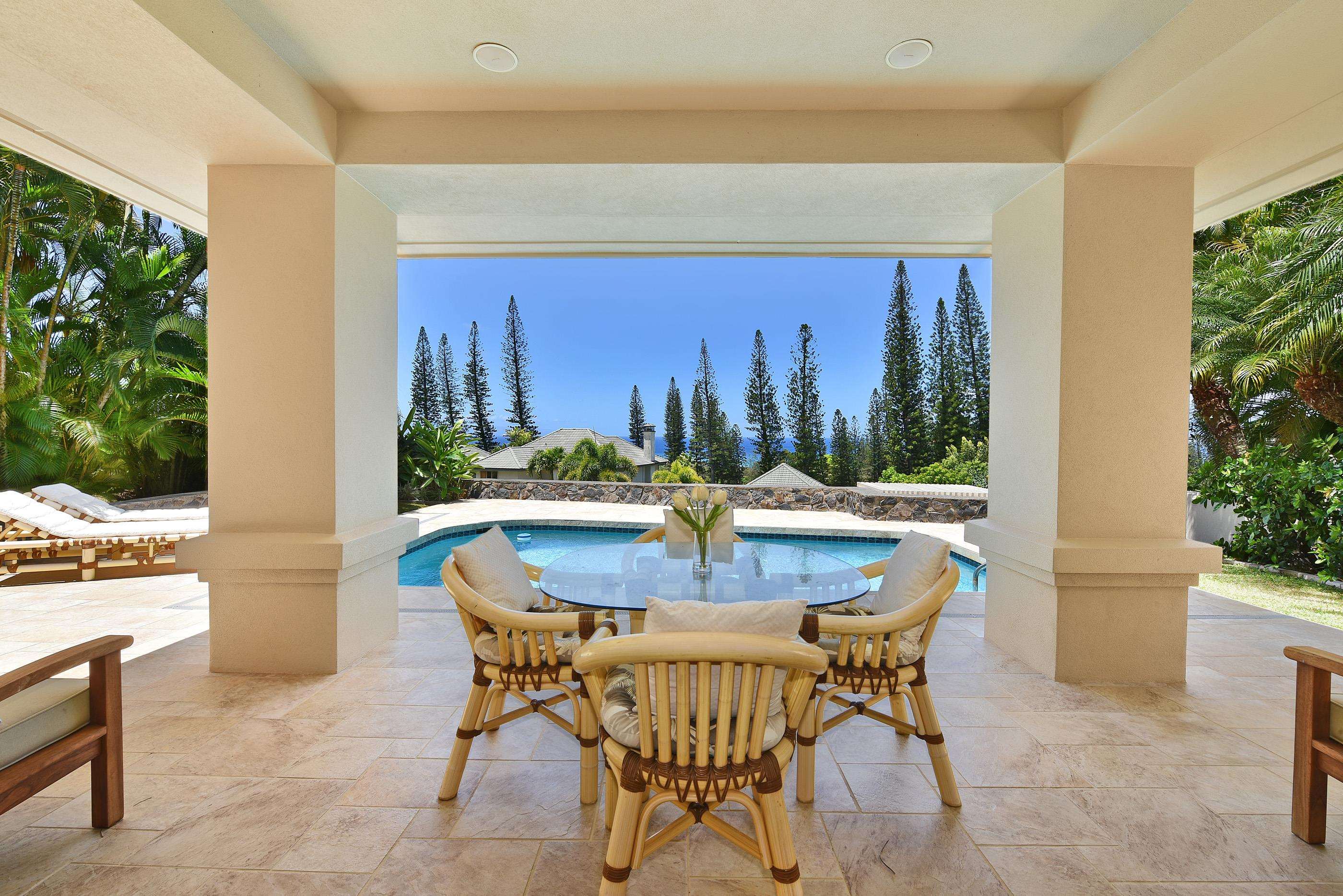 This is Pineapple Hill at its finest! This perfectly maintained 4-bedroom Pineapple Hill home is ideally located at the end of a cul-de-sac ensuring maximum privacy while enjoying magical ocean and sunset views. This fully-furnished, turn-key, two-story home with ground-floor primary bedroom is the preferred Pineapple Hill floorpan. It is located near to the top-notch community amenities including large, all-tile, solar-heated pool a fully-equipped clubhouse with bbq and tennis courts. This property qualifies for membership in the world-class Kapalua amenities including Hawaii's #1, Plantation Course, home of the PGA-Tour season-opening, Tournament of Champions, The Bay Course, The Tennis Garden, the award-winning Spa Montage, and the many incredible dining options.
