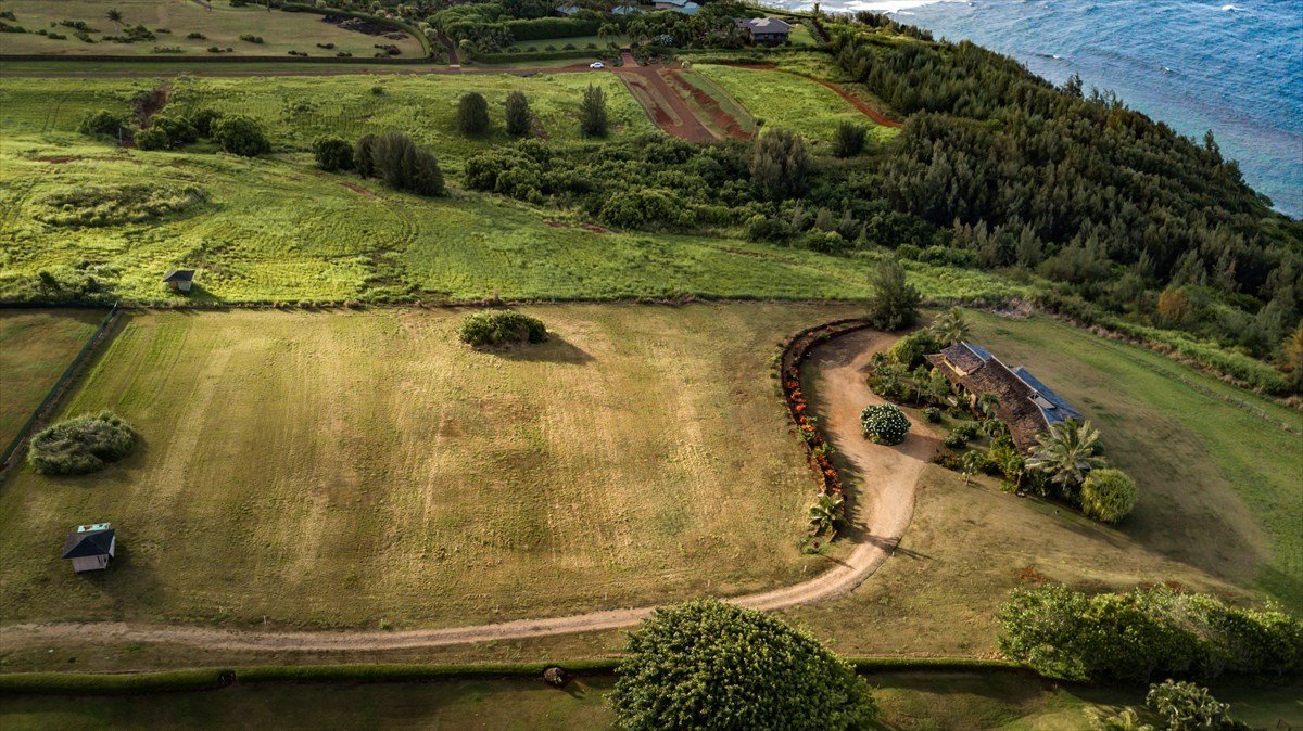 Absolutely the best buy available of an ocean bluff property on Kauai. Hale Lani Ahe...... House of Heavenly Breeze ............Rarely do these properties come on to the market. Located right on the front row bluff overlooking the Pacific Ocean. Privacy galore and you can walk to the sand.The sound of the waves will soothe your soul as you sit on the expansive outdoor lanais. This beautiful country home sits on 4.5 acres in pastoral Aliomanu Estates on Kauai’s Northeast side. This agricultural development is composed of many estates on parcels with acreage, giving it a truly peaceful rural character. This home features not only spectacular views of the Pacific; but also of majestic Kalalea Mountain that features King Kong's profile guarding and protecting the island. So here is your conundrum? Do you have your morning coffee enjoying the ocean sunrise on your large lanai facing the East? Or do you gaze at the Sacred Mountains for Hawaiians and the changing colors of the mountain shadows and rainbows. The choice is yours. The energy here is trans formative. The craftsmanship of the wood features of this home, including the Cherry wood flooring are outstanding. Beautiful outdoor copper lighting. You will never want to leave once you are there.