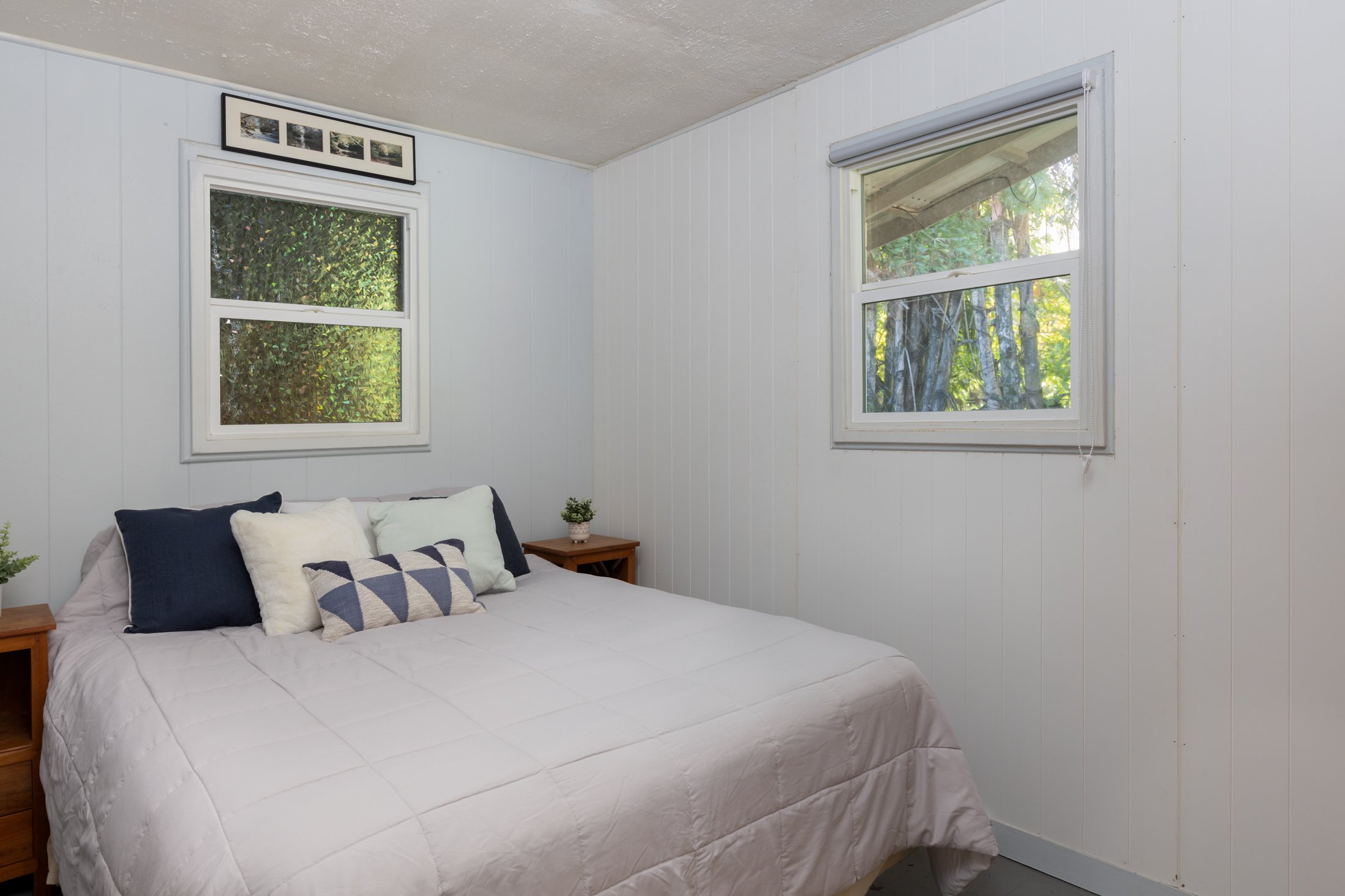 Nicknamed "Tiki Easy" this is the place to come and relax with friends and visitors alike. Located at one of the top lots on the street, enjoy ocean and Maui views with cooler tradewinds from this elevated house.Featuring 3 bedrooms and a full bathroom, the main home has oak flooring throughout, redwood walls and modern dual pane windows. The electrical system has been updated with a new panel box, outlets, new mast and plug for whole house generator backup. An added laundry/storage room provides an additional 432sf of covered space.Next door is the "cottage", a comfortable 672 sf space with bathroom for guests to stay and visit. With road access on two sides, this lot is more accessible than most, giving it an oversized feel. There's plenty of parking all around the property and overflow entertaining space on the slab/patio in front of the cottage.
