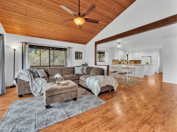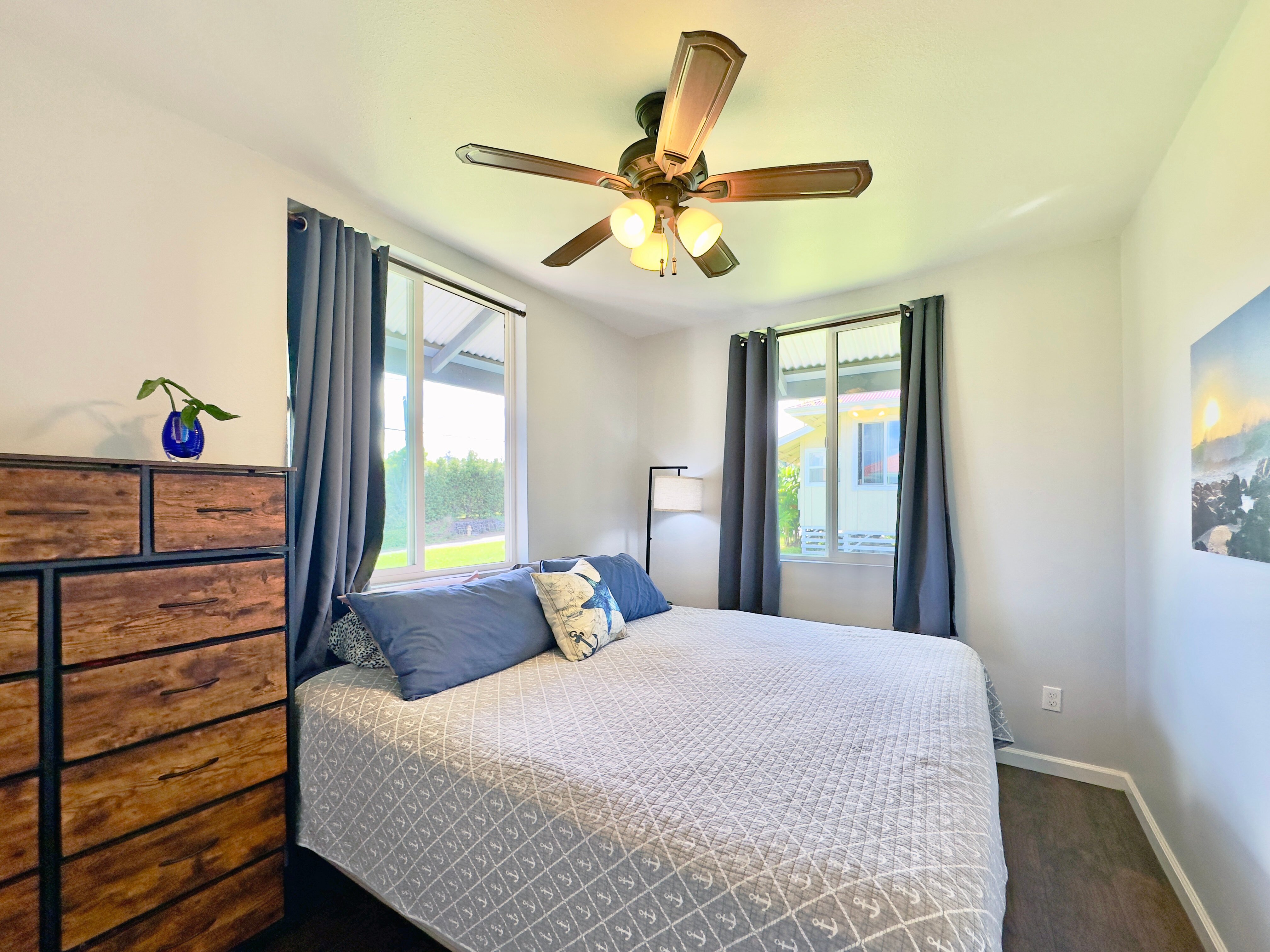 Lovely home in the heart of North Kohala with ocean and pasture views offers three bedrooms and one bath with separate ensuite studio for family, guests or hobbies. Banana belt elevation with temperate climate for growing and comfortable living. Large open eat-in kitchen has lots of counter space and an abundant number of cabinets. Light filled spaces. Newer stainless steel appliances. Newly painted interior throughout with recently updated laundry and bathroom. Mature tropical landscape with hibiscus, palm and protea plantings. Recently updated back lanai offering a protected space to enjoy the outdoors. Wonderful location close to town and short distance from state parks. Walking distance to major post office and credit union, art gallery, convenience store, salon and vet. Nearby shops, restaurants, groceries, and North Kohala Hospital. Please note listing does not match county records. Buyers and their agents to do their own due diligence.