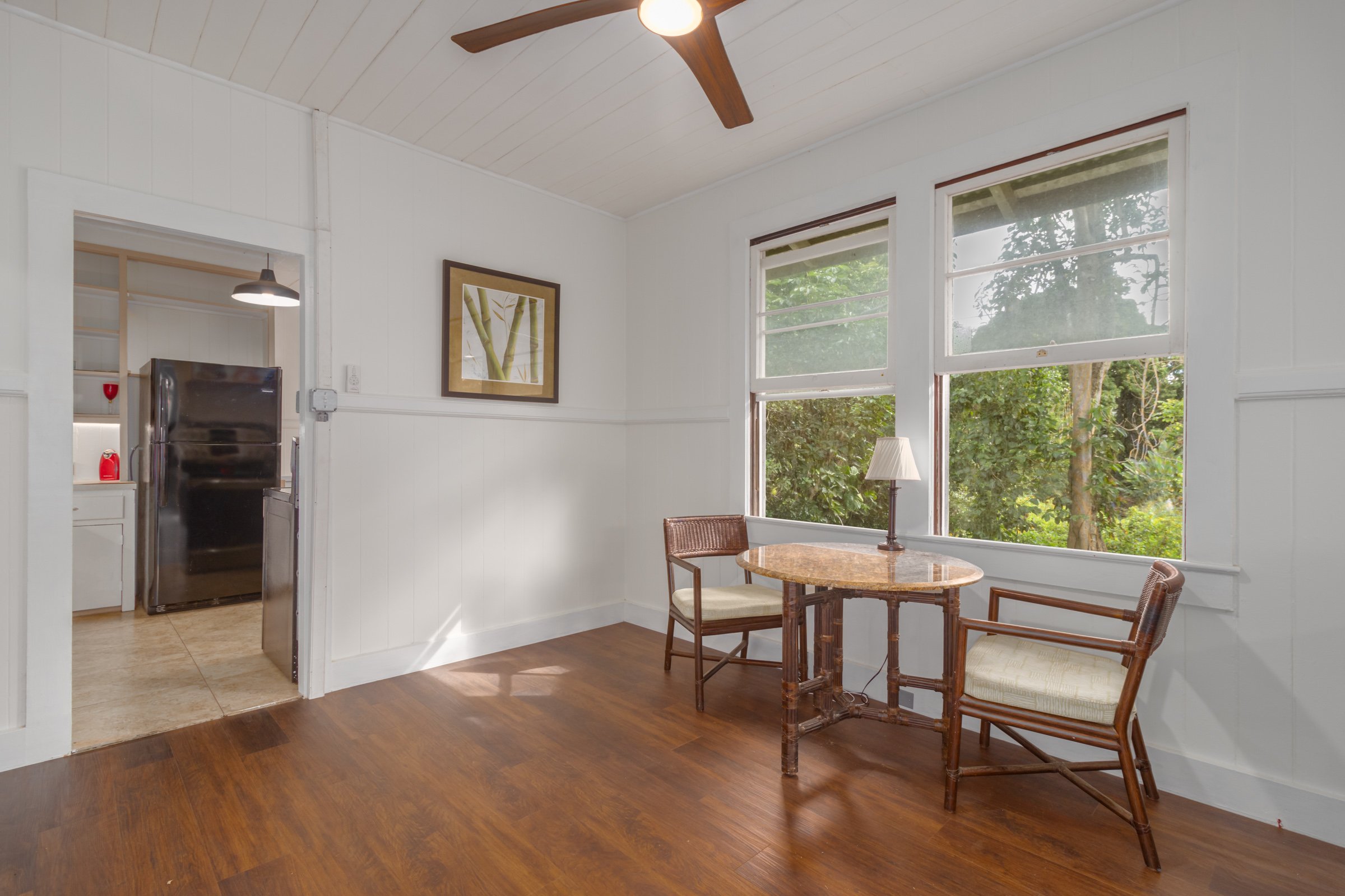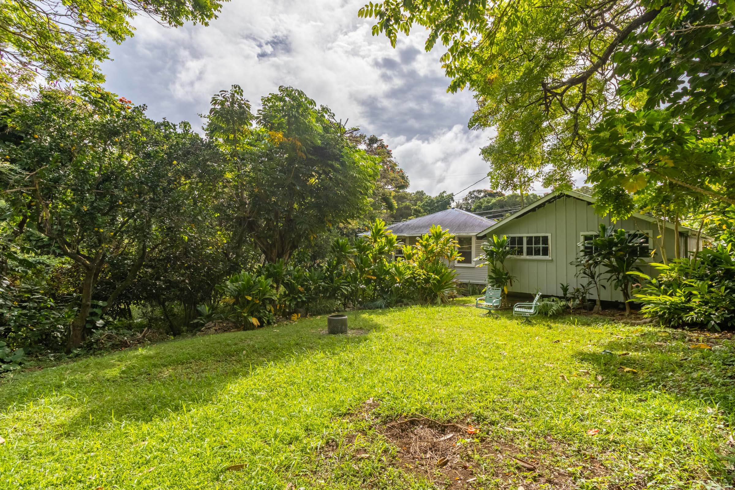 Long known as the Telephone House in Kapaau, vintage 1938 plantation home. Proximity next door to telephone company high-speed internet/fiber optic hub! It doesn't get any closer than this...lightning fast! This home still has many of its original charming elements. All new lighting fixtures and fans. New Vinyl flooring. Repainted interior. New electric wiring and 200 amp service panel, Great old porcelain sink in kitchen, wood windows, built-in storage. Large daylight basement with separate kitchenette, bathroom, shower, and laundry. Detached large two car+ garage. This 3 bedroom, 2 bath home, with beautiful and private back yard, is walking distance to Historic Kapaau town, which has many of the essentials for rural, historic, old Hawaii living. Kohala Hospital, with its recently upgraded emergency facilities, Kohala Civic Center with senior center, fire and police all nearby. Lovely local shops, art galleries, pharmacy, and restaurants. Wonderful Kamehameha Park just out the backyard with pool, 9-hole golf, ball fields, tennis courts, multiple gyms, active pickleball program, Roots Skate Park, all within walking distance. Hiking trails and beaches nearby. This home is surrounded by a large agricultural gulch property and so very private with no neighbors on North and West facing boundaries.