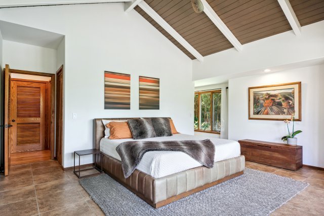 A separate guest suite, located on the opposite side of the garage from the house, is self-contained with bathroom, wet bar and its own ocean-view lanai. The two-car garage has two 220V plugs for charging electric vehicles, and generous built in shelving. A small office is attached to the garage.