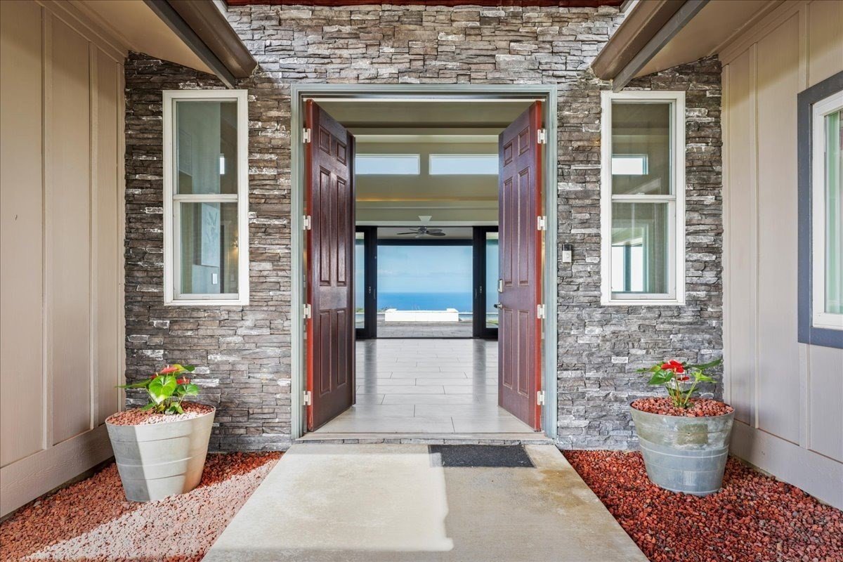 This custom built home in Puakea Bay Ranch in Hawi boasts some of the best ocean, sunset and Maui views you can find. In the winter you can see whales right from your back lanai while you enjoy the solar heated pool or hot tub! Entering the front doors reveals a large open living, dining and kitchen area, soaring ceilings and floor to ceiling sliding glass doors. Through these doors is the large, 1000 sq foot covered lanai. It is plumbed for gas, electric and water in anticipation of an outdoor kitchen. The 40 X 18 foot pool includes a tanning ledge and attached spa. Artificial grass between the lanai and pool keeps debris from the pool as well as saving irrigation water. Beyond the pool is >180 degree ocean view. Haleakala is visible most every day as well as Kaho'olawe and Lanai on clear days. The home offers 4 ensuite bedrooms all with ocean views. 2 of the suites have separate entrances and lanais for privacy as well as wet bar/kitchenettes. Other features of the home include: *Office with french doors *On demand gas water heaters *Split zoned AC in the bedrooms *2 oversized pantries *Large laundry room with windows *Partially furnished except staging items The home is located on 10 acres in the small gated community at a pleasant elevation of 300 ft. Just half a mile from the homesite is the waterfront park overlooking Puakea Bay. There is an equestrian easement over 4 miles long on the perimeter of the Ranch for walking and riding. Enjoy the country life in historic North Kohala, the birthplace of Kamehameha I and home to ancient Hawaiians before sugar plantation days. The small towns of Hawi & Kapa'au have boutique shops, grocery stores, post offices and a few restaurants. Local produce is available at small stores and farmers' markets. Get away from the crowds but still be within an hour from Kona Airport and 35 minutes to Waimea Town, sandy beaches and major resorts.