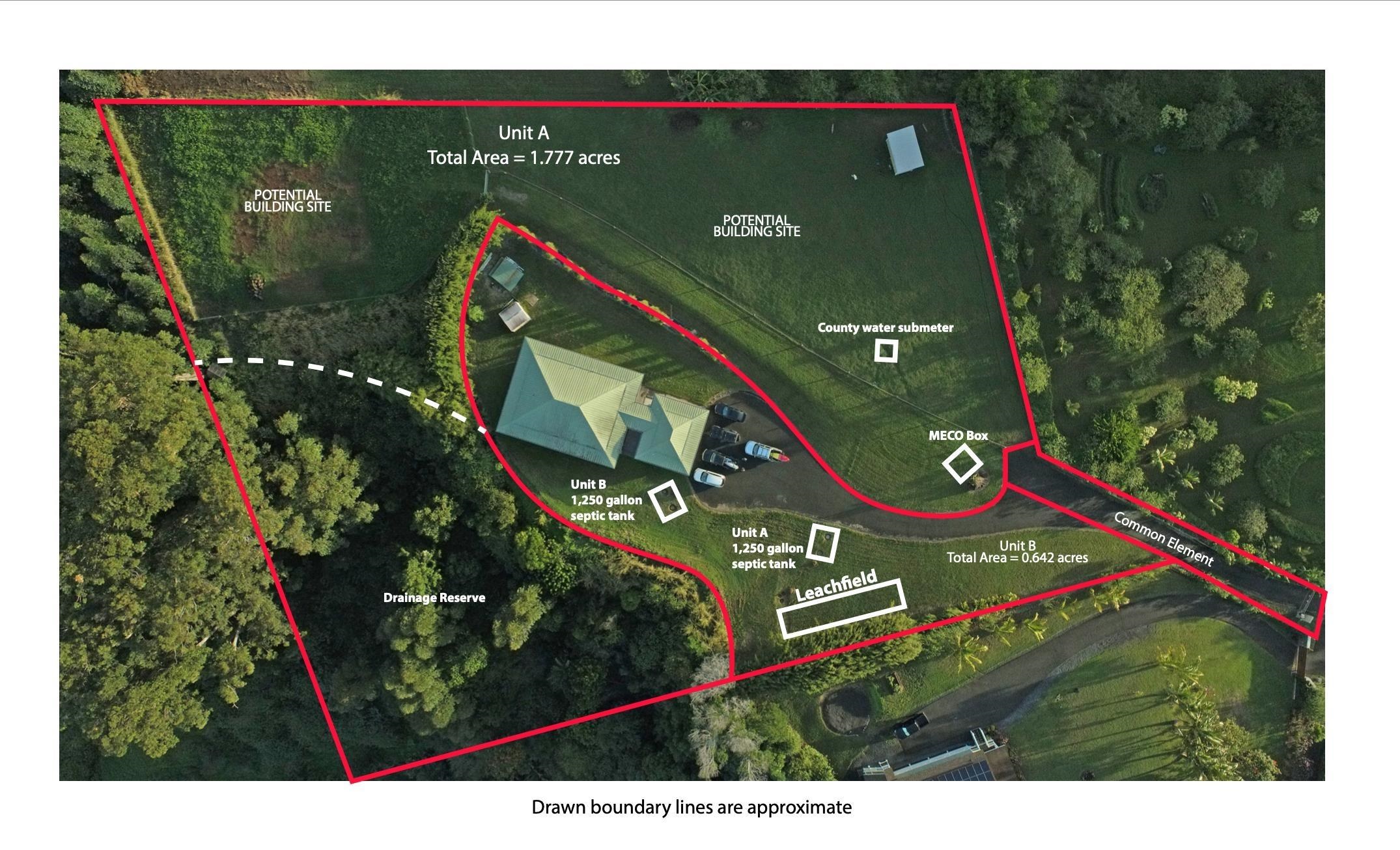 Panoramic ocean and countryside views sweep from the West Maui Mountains to Maui’s North Shore from this exceptional 1.777-acre (77,406 sq. ft.) CPR parcel in the highly desirable London Farms community. Designated for the construction of a main residence plus more, the agriculturally zoned property is currently a meticulously maintained goat pasture and includes a 128 sq. ft. wooden shed. Offering exceptional privacy and multiple building site options, this lot is positioned to take full advantage of its stunning surroundings. The property is fully prepared for construction with significant infrastructure already in place. County water is supplied through a shared 5/8-inch meter for both CPR Units A and B, with Unit A equipped with its own sub-meter and allocated 25.5 water fixtures. An underground water line is already run to the building site. A 1,250-gallon concrete septic tank, leach field, and septic lines are installed underground in an optimal location for various building configurations. The MECO pull box is located on the lot, with electrical, phone, and cable conduits installed underground from the MECO meter to the building area. The land has been thoughtfully cleared and graded, offering a mix of flat and gently sloping topography for ideal building layouts and efficient drainage. This rare offering presents the perfect opportunity to create your dream home in one of Haiku’s most sought-after locations, combining modern readiness with breathtaking natural beauty. The adjoining residential Unit B is also available for purchase, offering a rare chance to acquire both parcels. This is a residential CPR. Adjacent property is also listed under MLS#406846.