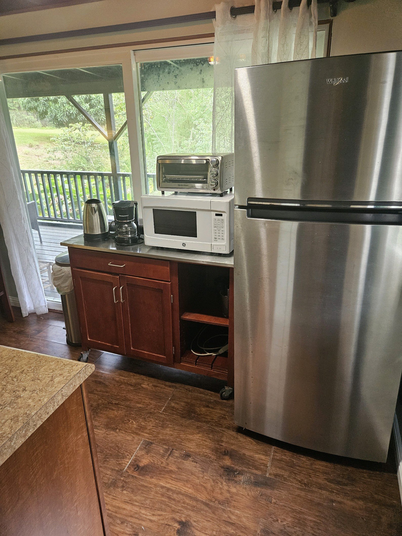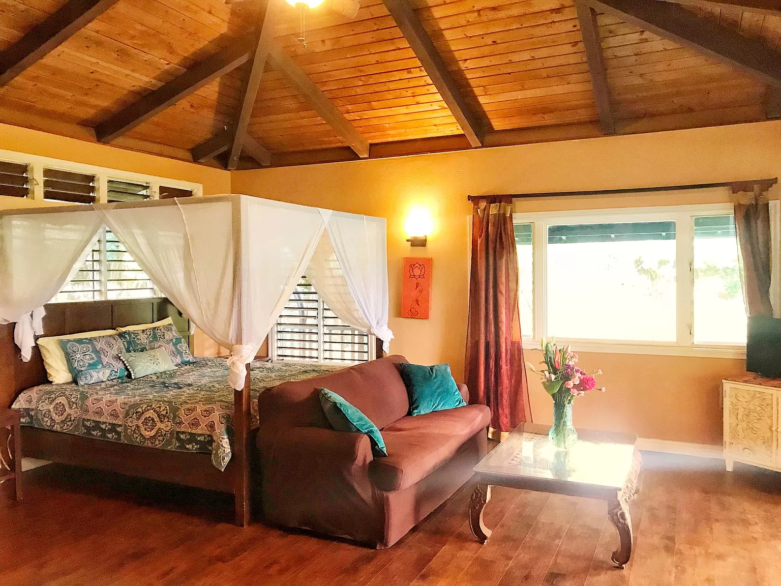 The home has a tree-house feel; clean, bright, and airy, with abundant windows, great airflow, with mountain & sweeping views of the lush grounds. Enjoy fruit trees of mango, avocado, papaya, noni, guava, lemon, passion fruit, coconut, macadamia nut, and exotic plants such as gingers, heliconia and orchids.