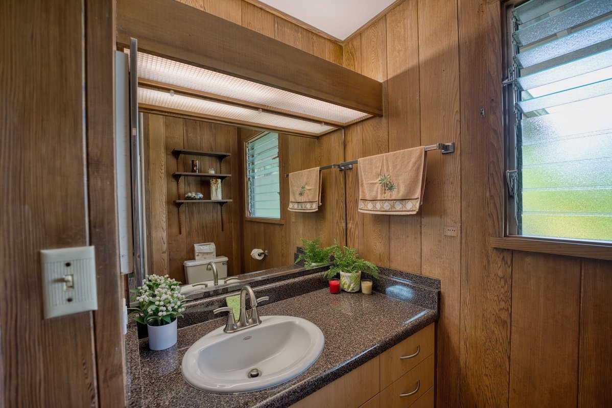 Welcome to this lovely, well-loved 4-bedroom, 2.5-bathroom home nestled in lower Kaumana. Situated on a flag lot, this 1970's gem offers the perfect blend of vintage charm with some modern upgrades. This home has been thoughtfully maintained, offering a warm and inviting atmosphere throughout. Step inside and you'll immediately be drawn to the beautiful redwood walls and original hardwood floors, creating a cozy and natural aesthetic that complements the surrounding tropical environment. The heart of the home is the renovated kitchen, where modern finishes and a spacious layout make it an ideal space for preparing meals, or entertaining. The living and dining areas flow effortlessly, creating a great space for gatherings with family and friends. The small lanai off the dining area is a great space to relax or simply enjoy a quiet morning with your favorite cup of coffee. Each of the four bedrooms provides ample room for relaxation with plenty of storage space. The primary suite boasts an ensuite half bath for added convenience and privacy. This property has been lovingly cared for and maintained over the years. It’s a true reflection of the warmth and personality of the current owners, ready to welcome someone new to make it their own. Hilo, known for its rich history, stunning natural beauty, and relaxed lifestyle, offers a variety of amenities right at your doorstep. From lush parks and beaches to the historic downtown area with local shops, restaurants, and farmer's markets, there's always something to explore. Whether you're hiking through the nearby rainforest or enjoying a leisurely stroll through town, Hilo’s charm is undeniable. Located in a neighborhood just minutes from downtown Hilo, this home provides the perfect balance of seclusion and convenience, a retreat in one of Hawaii’s most welcoming communities, this property is sure to make you feel right at home.