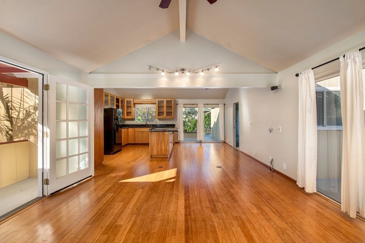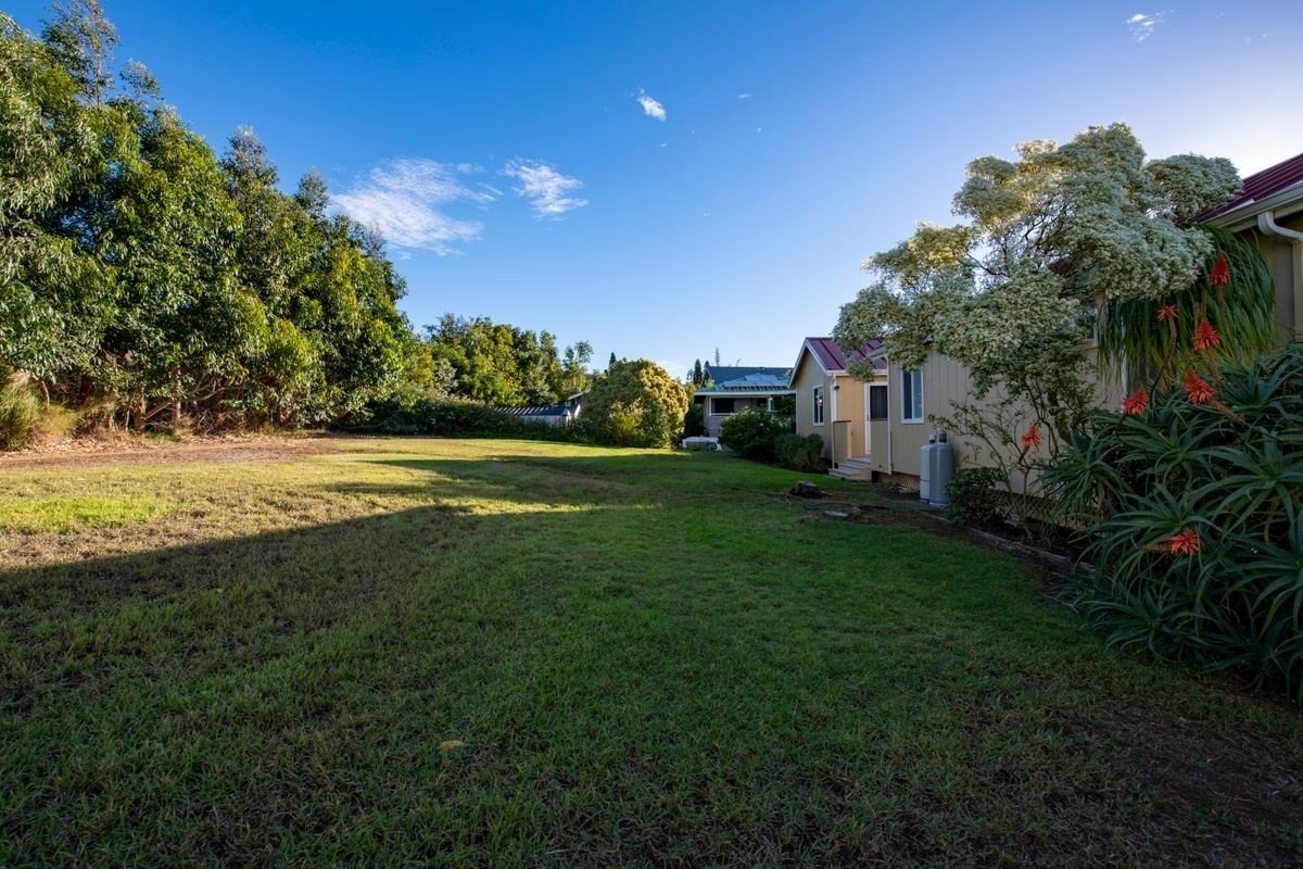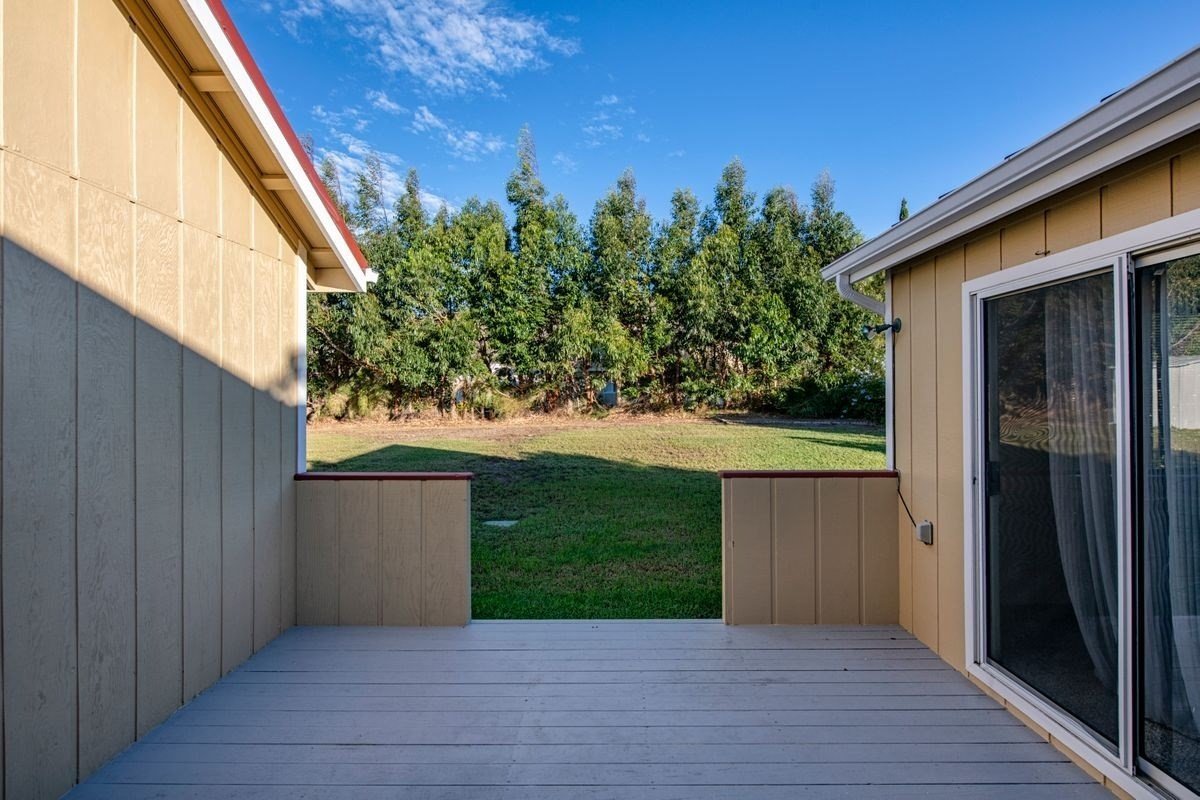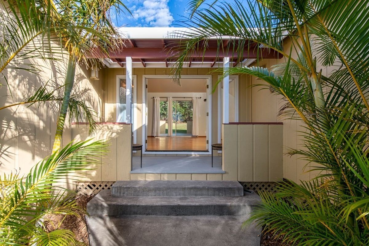 This is a lovely family home in Kamuela View Estates. It has 3 bedrooms and 2 bathrooms on one side of the home, and a second master bedroom/mother-in-law/studio on the other side of the home that has its own entrance and can be connected or closed to the main house. The laundry room connects it to the great room. Sun-filled decks are utilized around the home for outdoor living areas. Brand new paint inside and out and new carpets. Waimea is a wonderful upcountry town and this neighborhood is only 5 minutes to town and 15 minutes to the beach.