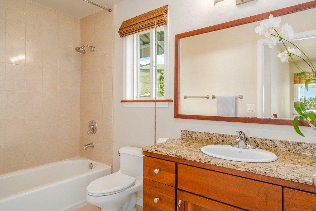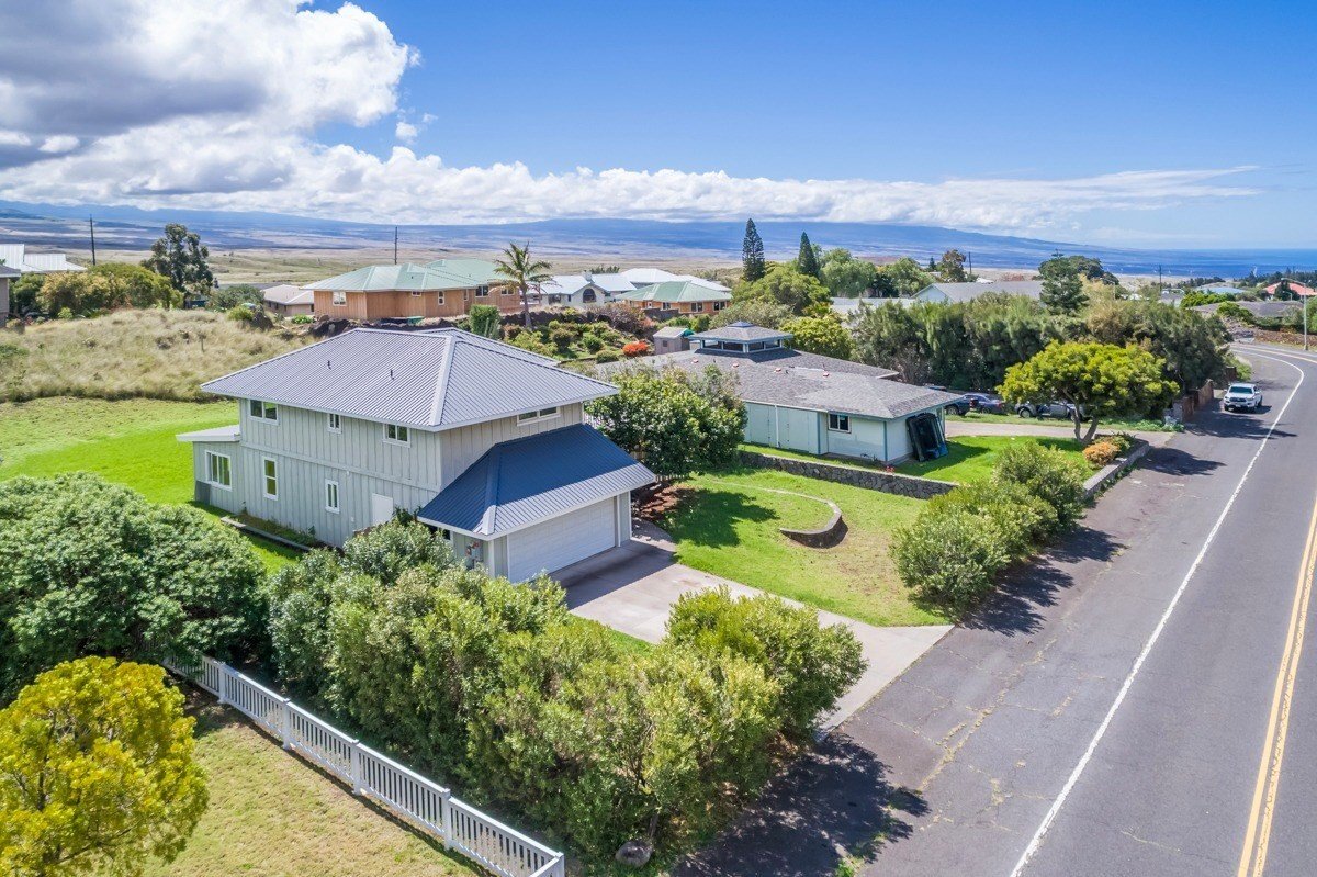 Located in quiet and highly desired Kamuela View Estates on the sunny side of Waimea, this gently kept two-story home on a third of an acre offers a large master bedroom suite that leads out onto a deck from which you can sun during the day and view spectacular sunset skies in the evening. There are 3 additional bedrooms upstairs, an office, a spacious eat-in kitchen with Wilsonart countertops, a laundry room, and an attached two-car garage. Upgraded features include brand new photovoltaic system, renovated master bathroom, fresh interior and exterior paint, new lights, fans and fixtures, as well as new carpet in the bedrooms. Remaining floors are engineered hardwood and ceramic tile. All bathrooms have granite counter tops.The neighborhood is quiet and conveniently located just minutes from pristine Kohala Coast beaches and famed Gold Coast resorts. Just a few minutes drive to downtown Kamuela, home to two private college preparatory schools, North Hawaii Community Hospital, Kahilu Theatre, shopping, restaurants, and several farmers markets. Clean contemporary in style and neutral in color; home is move-in ready. No HOA dues.