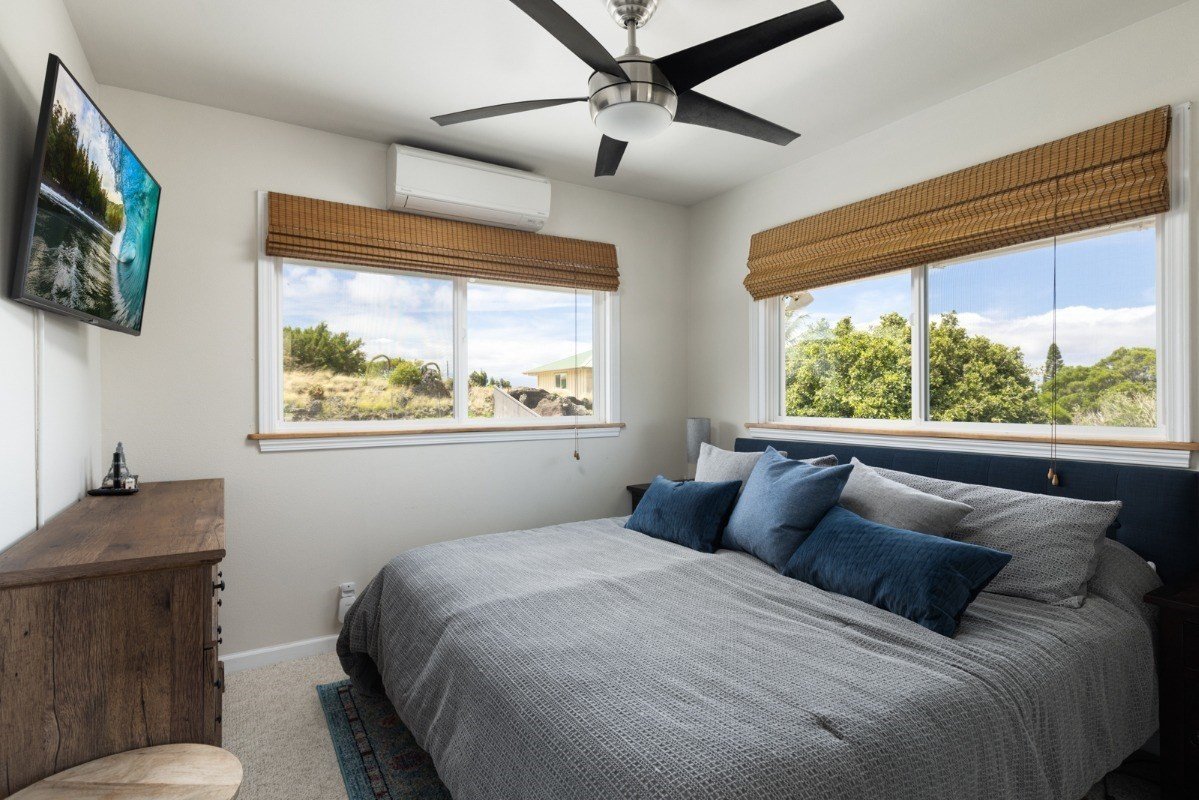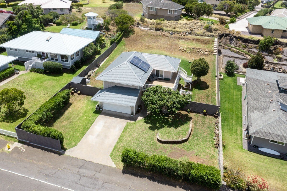 This well appointed and updated 4 bedroom, 2.5 bath home in South Kohala's Kamuela View Estates boasts views of Kohala's rolling hills, blue skies and sunset light. There is an airy, open kitchen with eat-in island, dedicated office, sunroom and spacious lanai off the primary bedroom. The home has been tastefully modernized by the current owners in the past few years. From a security system to a privacy fence and updated fixtures throughout, this home feels sleek yet warm. An expansive grassy backyard with beautiful sunset views towards the coast is terraced for a future garden or orchard. Leased photovoltaic system to offset energy use.Rarely do homes of this condition become available in this sought after neighborhood with a spacious floor plan and in move-in ready condition! This neighborhood of entirely custom homes has underground electric, streetlights, wide streets and a great feel throughout.Central location- 10 minutes drive to the west coast beaches and 10 minutes to town center in Waimea.Recent upgrades: -Exterior paint -Solid wood privacy fence with concrete foundation -Air conditioning, dehumidifying and heating split system throughout -Ring security system -Light fixtures with wifi controls -Window treatments throughout -Some new appliances(refrigerator, dishwasher, wine cooler, C02 detectors)3D Matterport tour and floor plan attached.