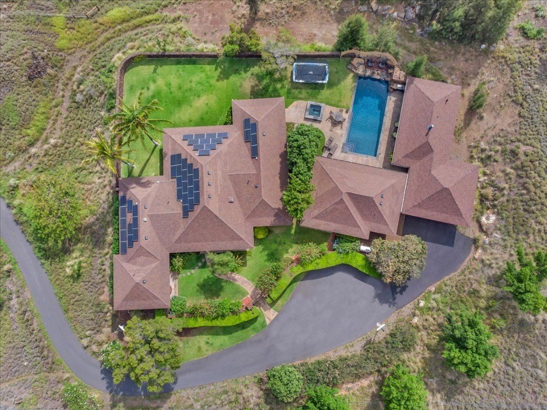 This beautiful custom built 6 bedroom 5.5 bathroom home on 2.5 acres offers private family fun and entertainment while enjoying expansive ocean and mountain views. The open concept design is enhanced by custom sliding glass doors that fully open out to the lush grass and pool area. Granite counter tops and Wolf appliances makes it a joy to serve those seated on the bar top and dining area. The main portion of the home is comprised of the large living, kitchen and dinning area, a large television room, three bedrooms with two full baths and a beautiful outside shower, jacuzzi tub, and large walk-in closet in the master bedroom.The remainder of the home includes a large fitness room with a bedroom and bathroom, two seperate guest quarters, each having its own full bathroom, a 42ft long, 11ft deep reinforced concete pool with a heated jacuzzi beside it. Each of the guest bedrooms could very easily be used as a home office if desired. A fully paid for 42 panel, dual Tesla battery Photovoltaic system that completely supplies the house year round eliminating any electricity bills. The house has also been outfitted with an internet enhancing and accoustic package that enables users to effectively utilize the internet while listening to music througout the home.The home is located just 10 minutes away from the coastline and 8 minutes away from the Hawaii Prepratory Academy (HPA) and Kamuela town.