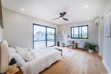Fall in love with this beautifully remodeled (inside and out) 5 bedroom 3 bath single level home. Fifth bedroom with wet bar offers flexibility as a rental or home office with separate entrance. DOUBLE wall construction, plumbing upgrades, new electric upgrade to 200 amp service, new vanities, open concept gourmet kitchen with new appliances and gas range, new paint interior and exterior, new siding, newer roof with new 6 inch gutters, fresh landscaping and private, enclosed backyard, parking for 5 cars, vaulted ceilings, BUILDER ALERT - comes with expired but approved building plans to maximize mountain and possible lake views when you build that 2BR/1BA second story!! 18 new, OWNED solar panels to keep your electric bills low, 6 split AC units throughout home, large laundry room, lanai space off each bedroom offers multiple sitting areas. Just down the street to Kailua town and minutes away from beautiful Kailua beach. Irrigation system, all new luxury vinyl plank flooring, finished two car garage with new door. The large, covered back lanai space is perfect for Hawaii style indoor/outdoor living. Welcome home to one of Oahu's most desirable neighborhoods. Come see for yourself!