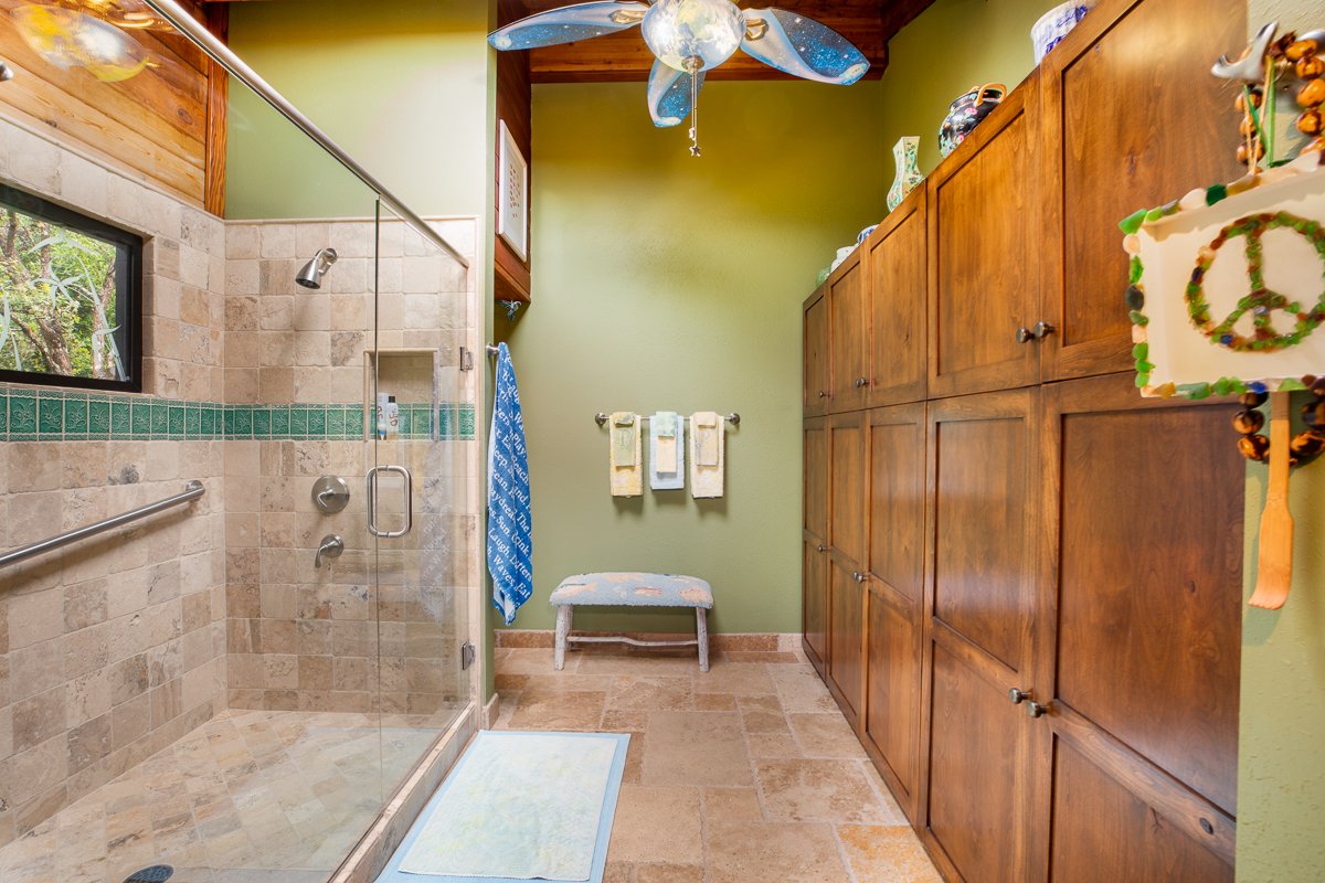 This fully-remodeled home offers a combination of stunning design and breathtaking views. As you step inside, you'll be captivated by the open Cathedral ceilings with large windows perfectly framing the majestic Mauna Kea mountain, allowing you to immerse yourself in the natural beauty of your surroundings - a serene retreat where you can relax and appreciate the awe-inspiring scenery.The interior features stone flooring throughout the main areas. Granite countertops adorn the well-appointed kitchen, which includes top-of-the-line appliances such as a Wolf range Sub-Zero refrigerator/freezer, Sub-Zero full-size ice maker, and other high quality amenities.An audio/visual system with speakers installed by SJ Communications allows you to enjoy your favorite music both indoors and outdoors, creating a harmonious atmosphere throughout the house, which is being offered fully-furnished (per inventory).An owned photovoltaic system complete with 46-panels and (2) inverter's ensures energy efficiency. Track lighting has been installed, illuminating every corner of the home. Additional features include custom cabinetry with built-in shelves, bedroom fans, skylights throughout the house, and a private driveway with an electric gated entrance.The independent and fully-contained guest quarters features two private entrances for easy access, a large separate living room, spacious en-suite bedroom and a fully-loaded kitchenette, also with additional high-end, stainless steel appliances.The home offers a spacious garage and a utility/laundry room with double washers and dryers, ample storage, counters, and workspaces providing functionality and organization.The custom in-ground spa, designed by Kai Pono, is a true oasis with its own fencing, lighting, outdoor shower and speakers connected to the audio/visual system.The landscaping is immaculate, and a driveway encircles the home providing easy access.