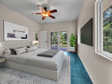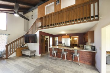 Truly a unique "cozy and comfortable" home with a wood burning stove and loft style den. Attractive pine wood plank floors finish the presentation of this contemporary cottage design. There are two bedrooms, and two full bathrooms. The large covered lanai is perfect for outdoor dining and entertaining in a private setting.