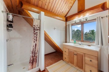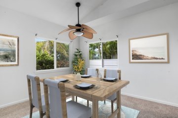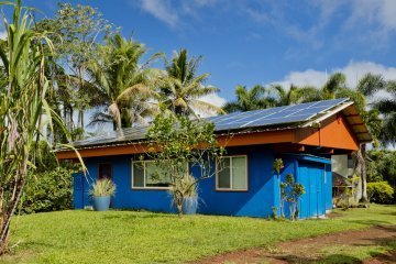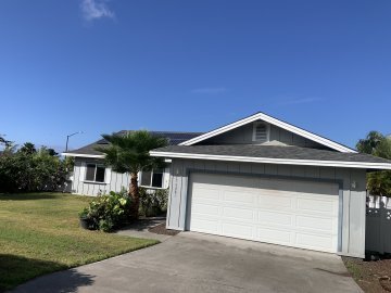 This lovingly maintained home in Waimea offers a unique blend of comfort, versatility, and tropical charm. The original home boasts an open-concept kitchen, living, and dining area with cathedral ceilings, updated appliances, and a gas cooking range. This 3-bedroom, 2-bath section features large tile flooring in the main living spaces, hallway, and bathrooms, complemented by engineered flooring in the bedrooms. The spacious primary bedroom includes a separate entrance leading to a private side yard. The home also features a new roof and gutters along with a Sunrun leased photovoltaic system with two LG lithium-ion batteries, adding energy efficiency and sustainability to its many highlights.